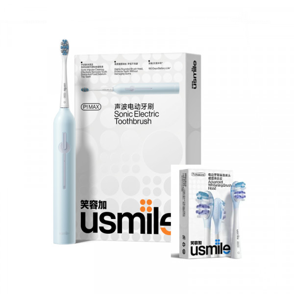 (中科惠橙)usmile笑容加P1MAX电动牙刷 精灵蓝 +缓震亮白款牙刷头2支装 男女成人声波牙刷