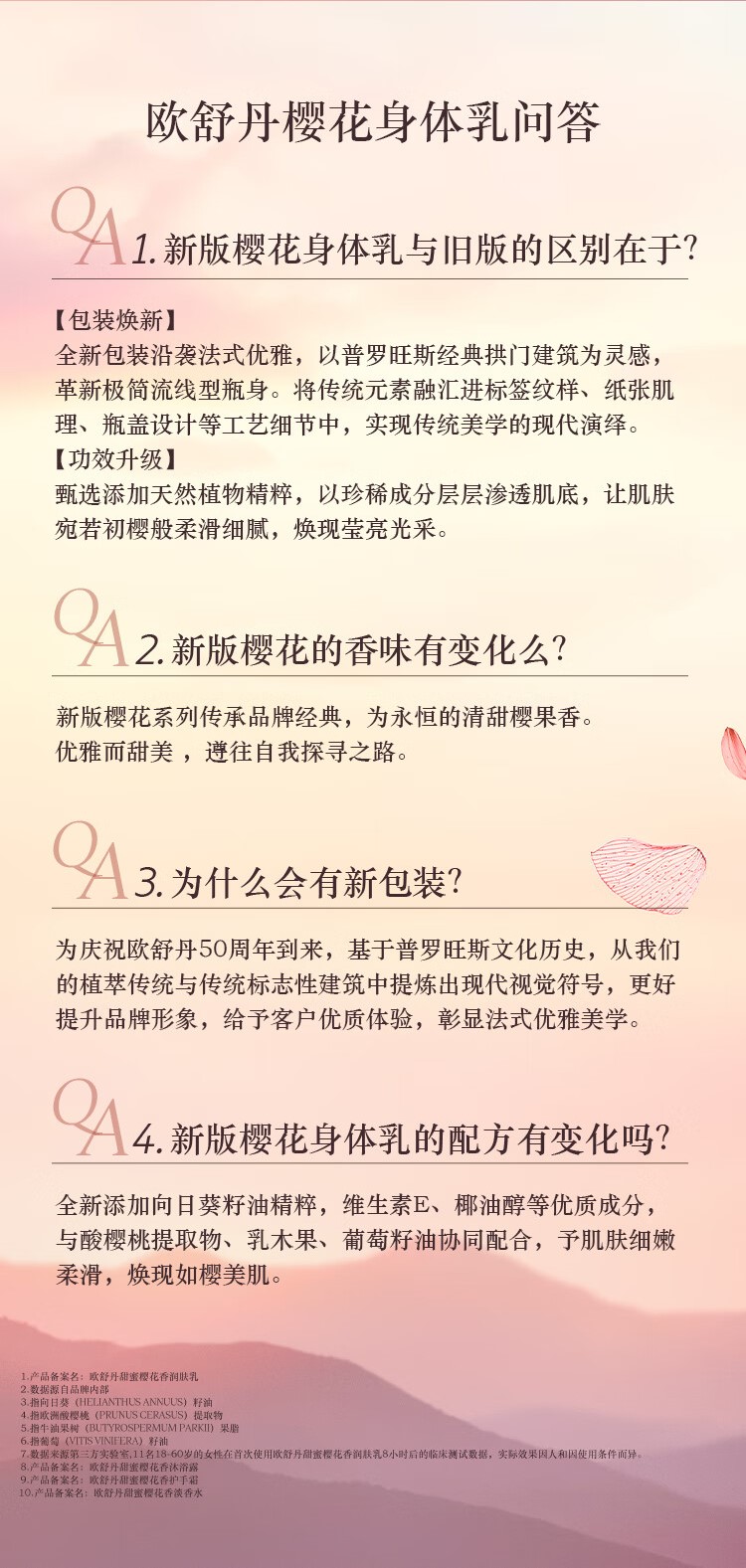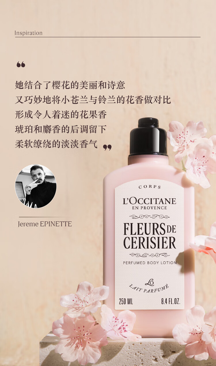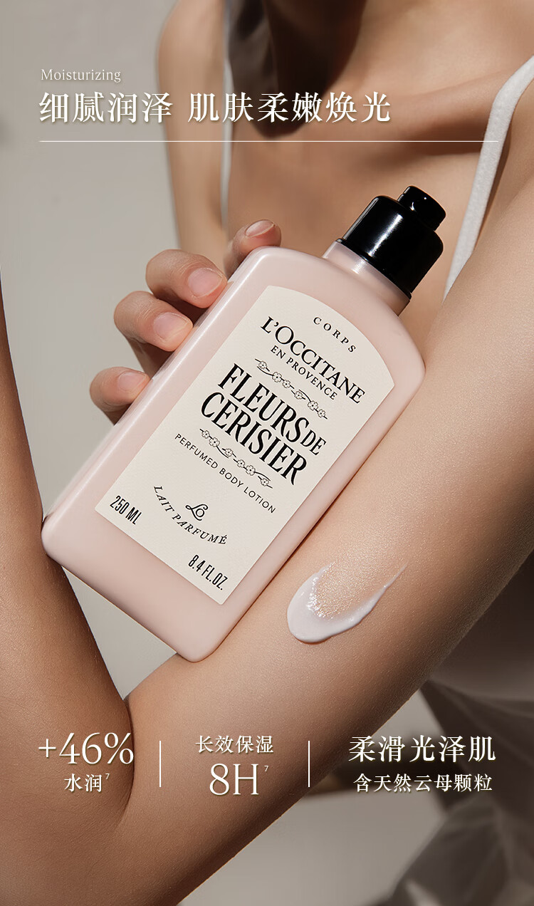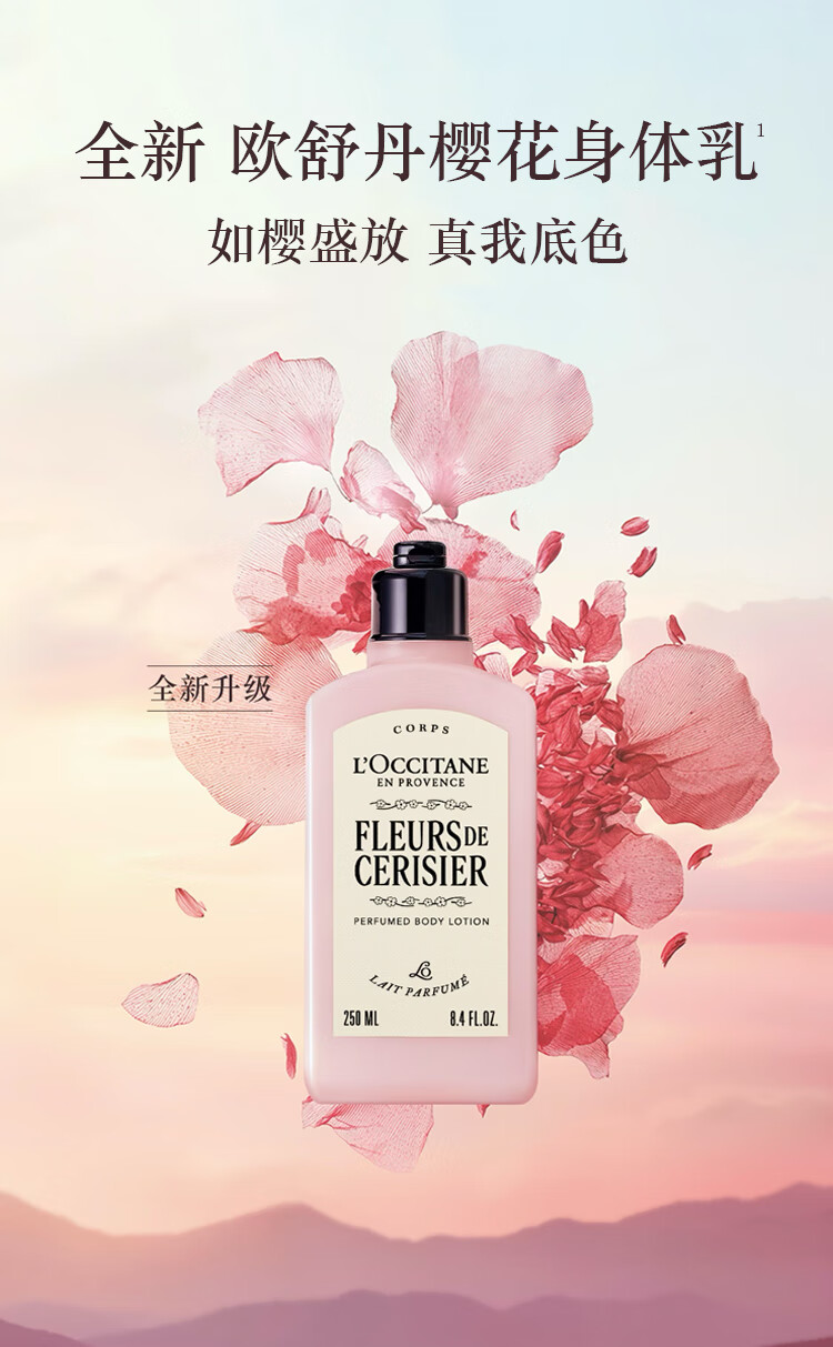 (巨邦佑)BJ+欧舒丹甜蜜樱花香氛亮采润肤露250ml 身体乳保湿润肤滋润防干燥持久留香