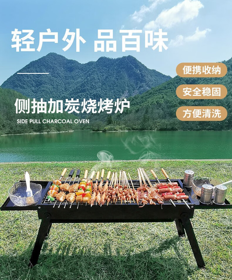 商品名称:(巨邦佑)BH+飞图乐(FTLY)带隔板侧抽式烧烤架SKJ0102 便携式烧烤露营装备