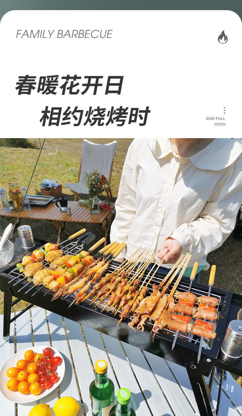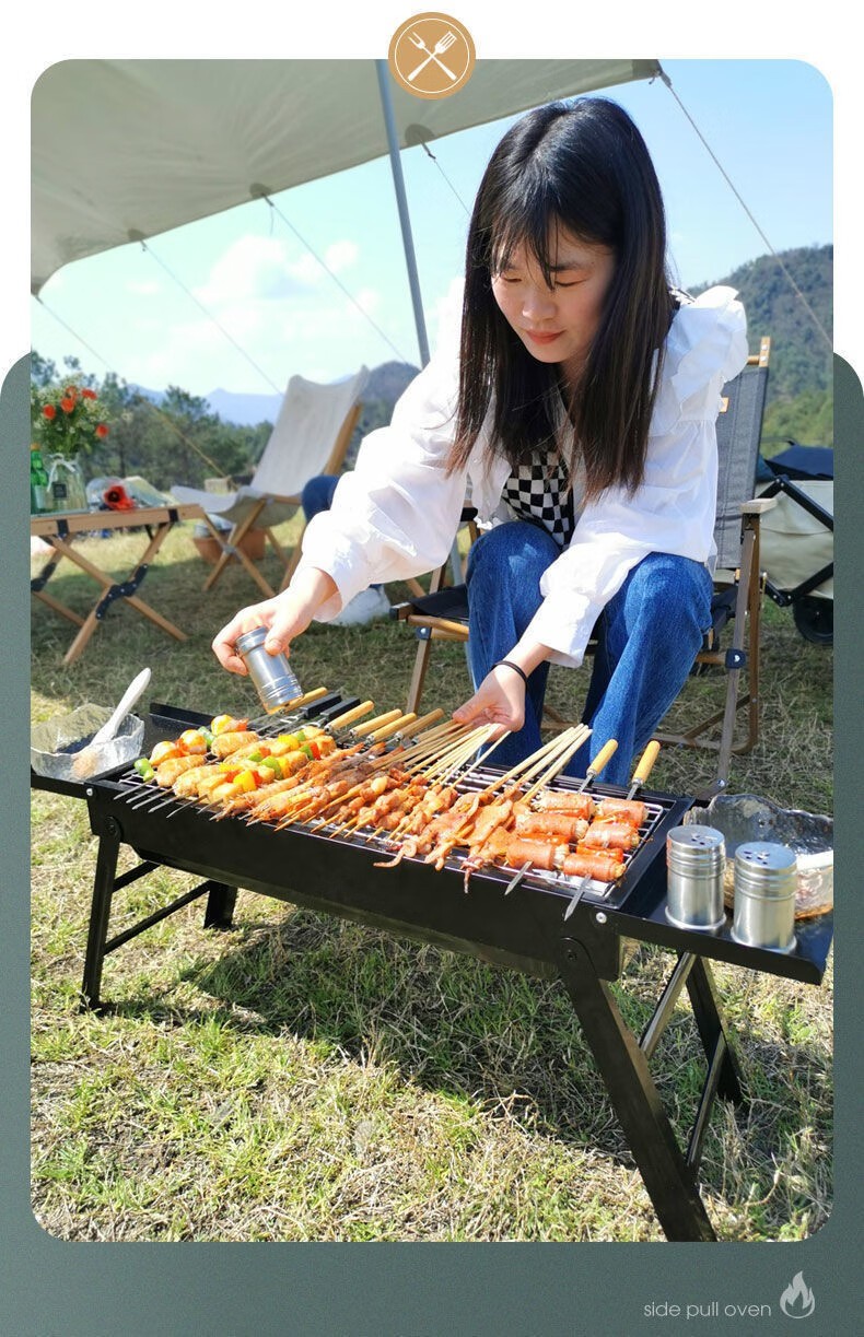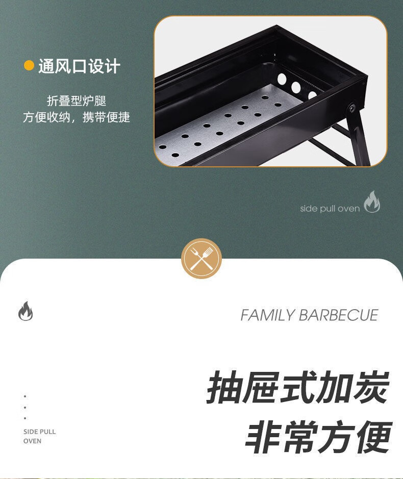 (巨邦佑)BH+飞图乐(FTLY)带隔板侧抽式烧烤架SKJ0102 便携式烧烤露营装备