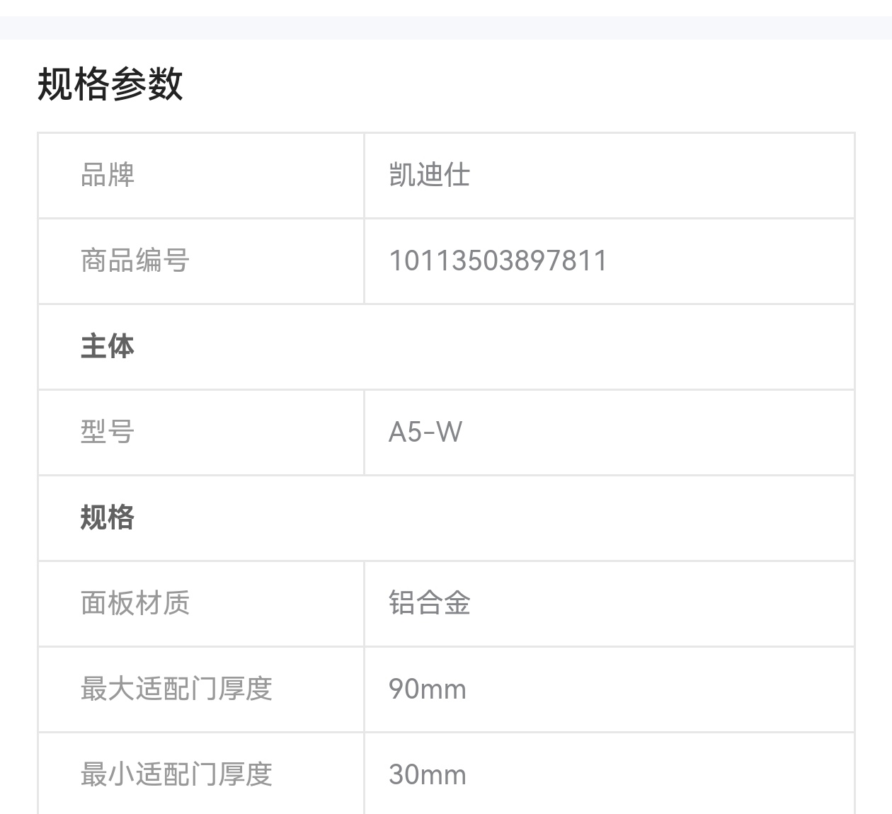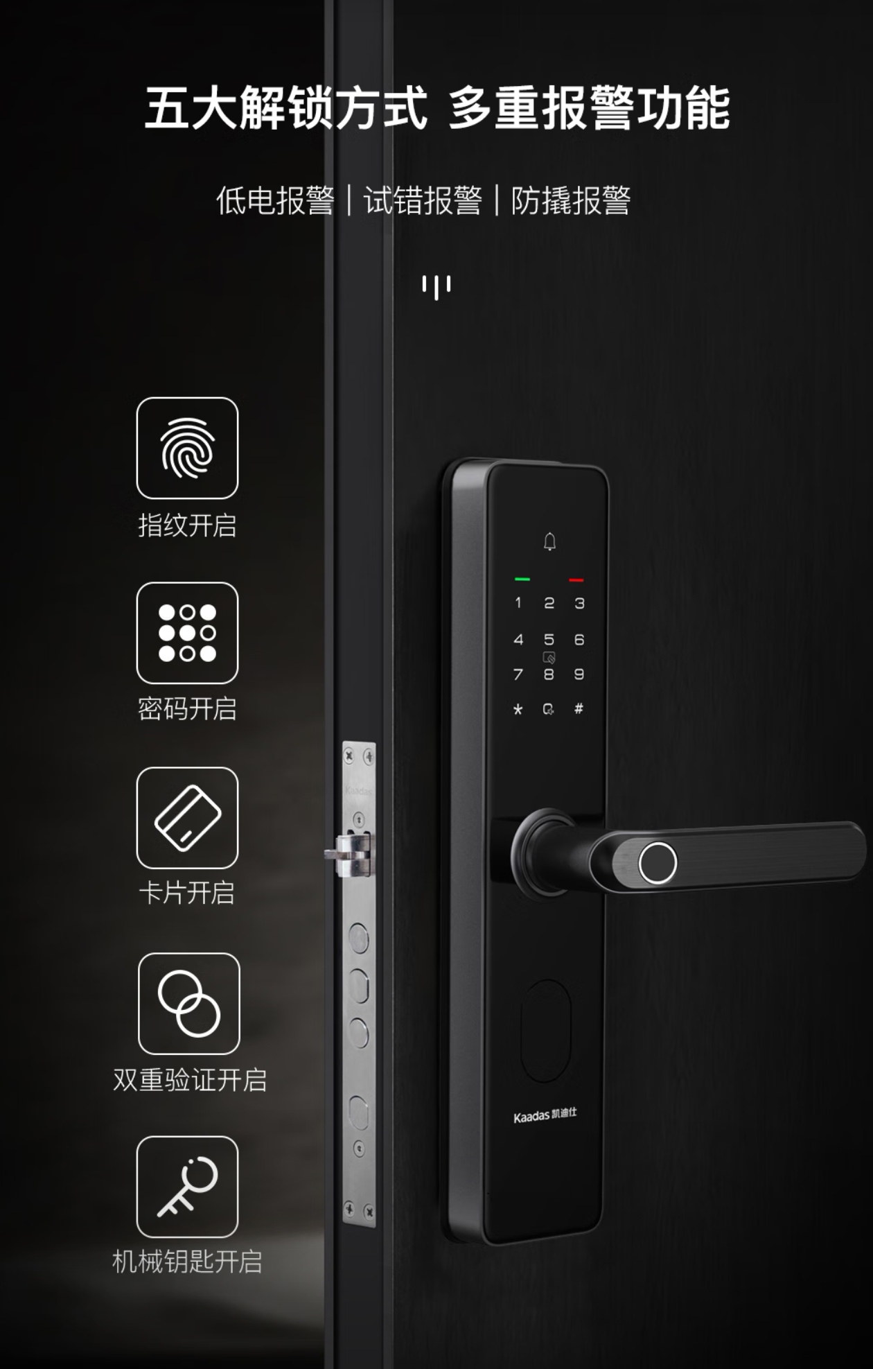 商品名称:(巨邦佑)T+凯迪仕(KAADAS)凯迪仕A5-W指纹密码智能锁支持WiFi C级锁芯半自动把手款一握即开智能门锁