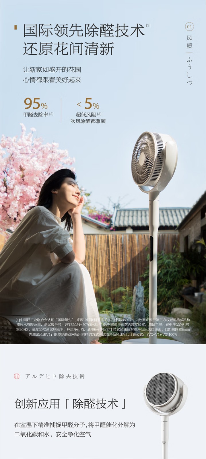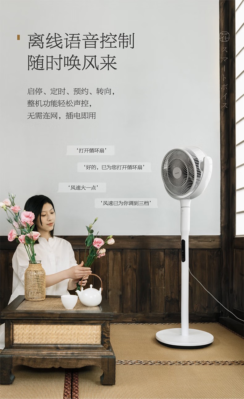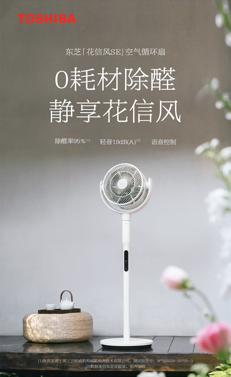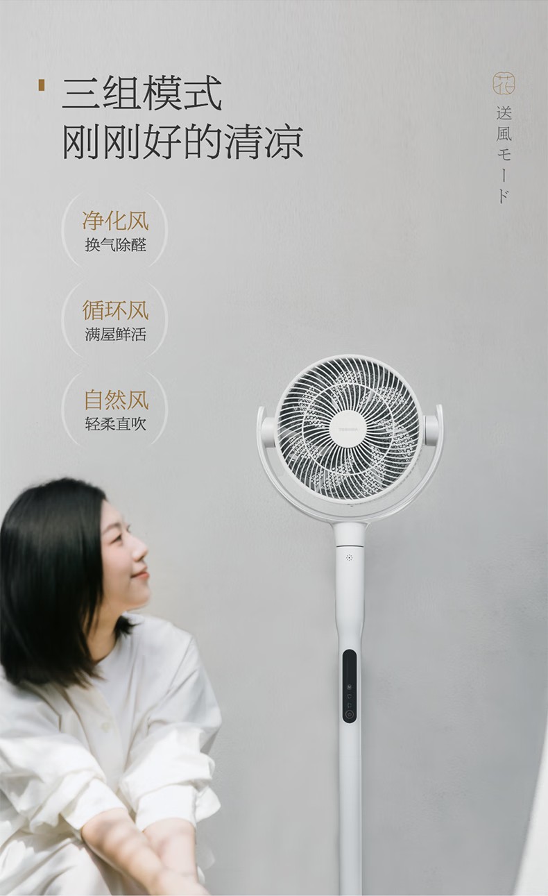 (巨邦佑)R+东芝【花信风SE】电风扇空气循环扇F-DSC650CN(W) 0耗材除醛净化落地风扇直流变频遥控语音智控