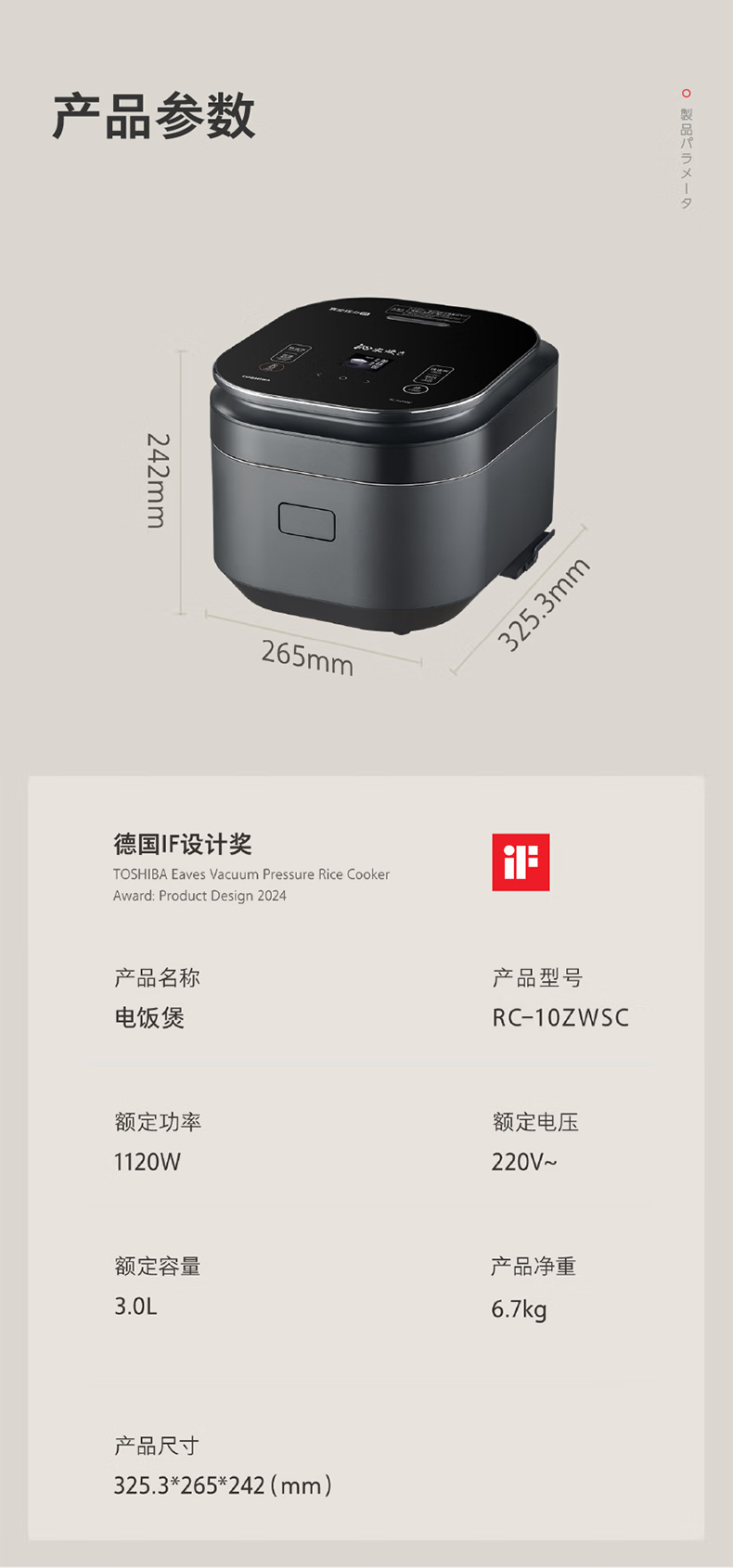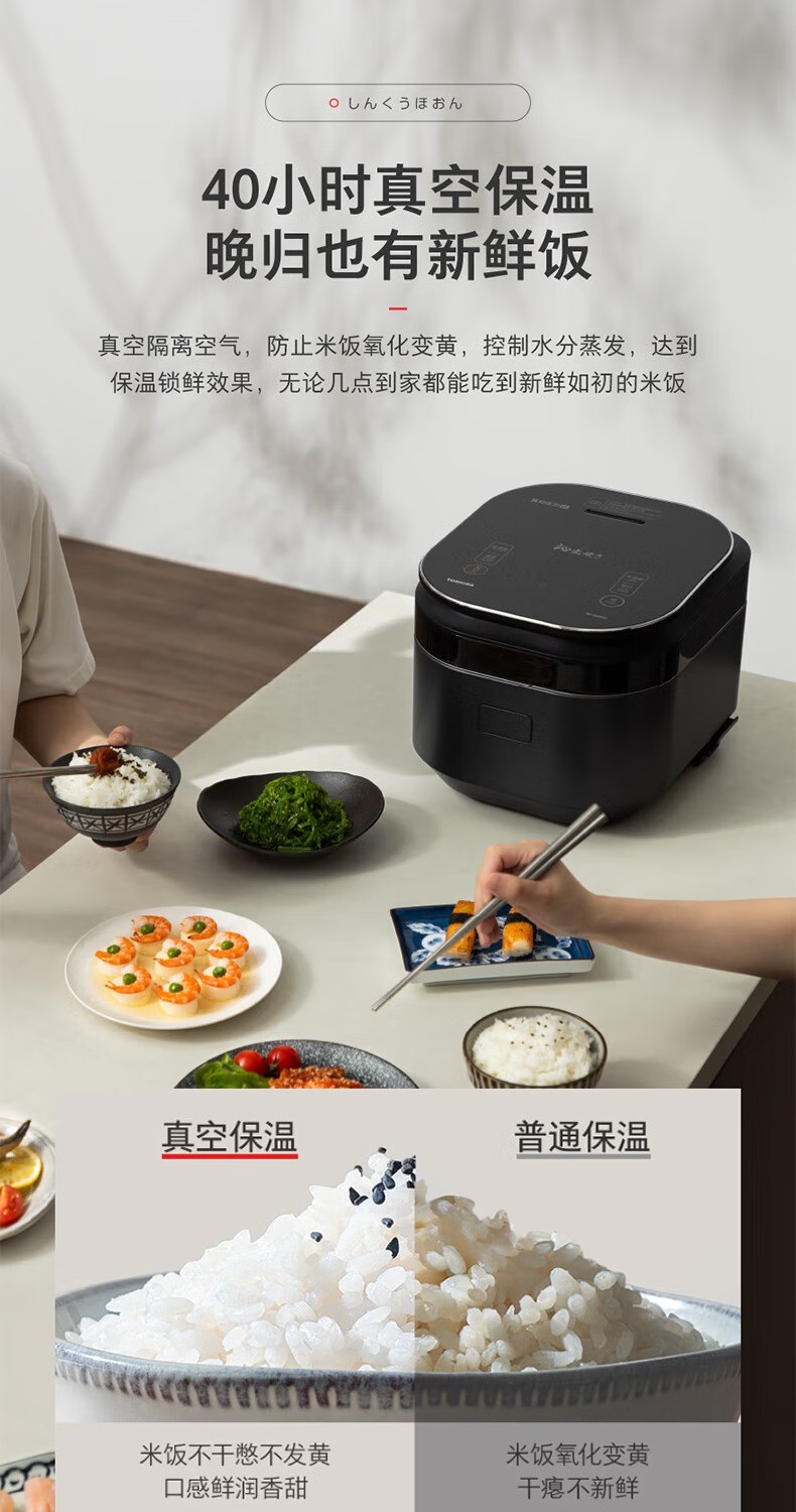 (巨邦佑)R+东芝(TOSHIBA)RC-10ZWSC 真空沁米炊压力多段IH电饭煲2-3人 3L真空锁鲜40H 5mm原装进口锻造铜釜
