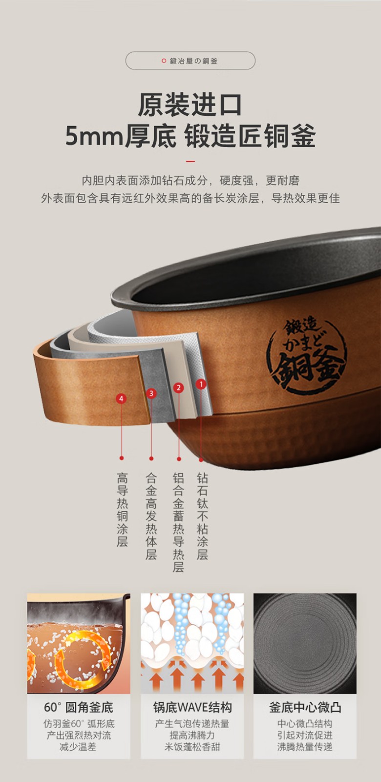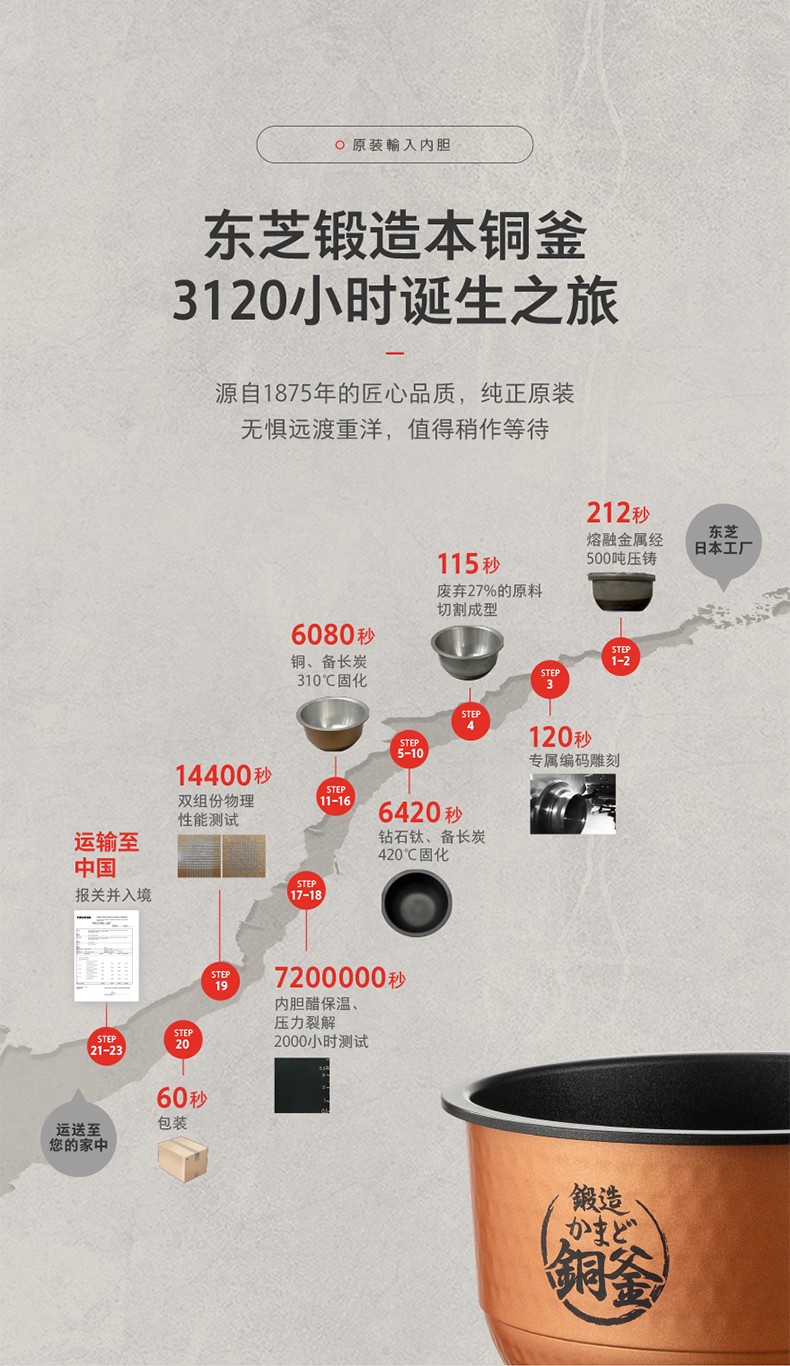 商品名称:(巨邦佑)R+东芝(TOSHIBA)RC-10ZWSC 真空沁米炊压力多段IH电饭煲2-3人 3L真空锁鲜40H 5mm原装进口锻造铜釜