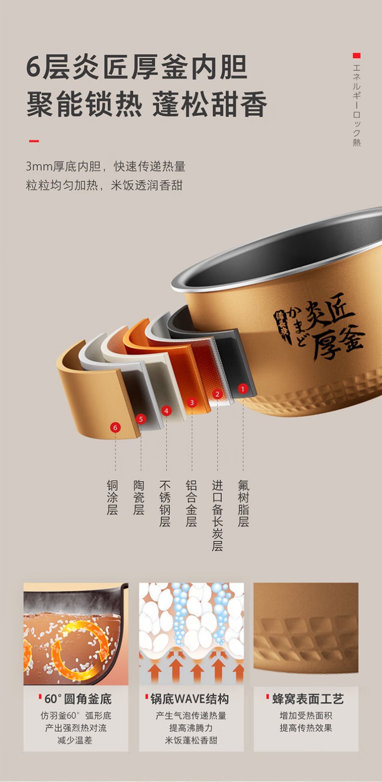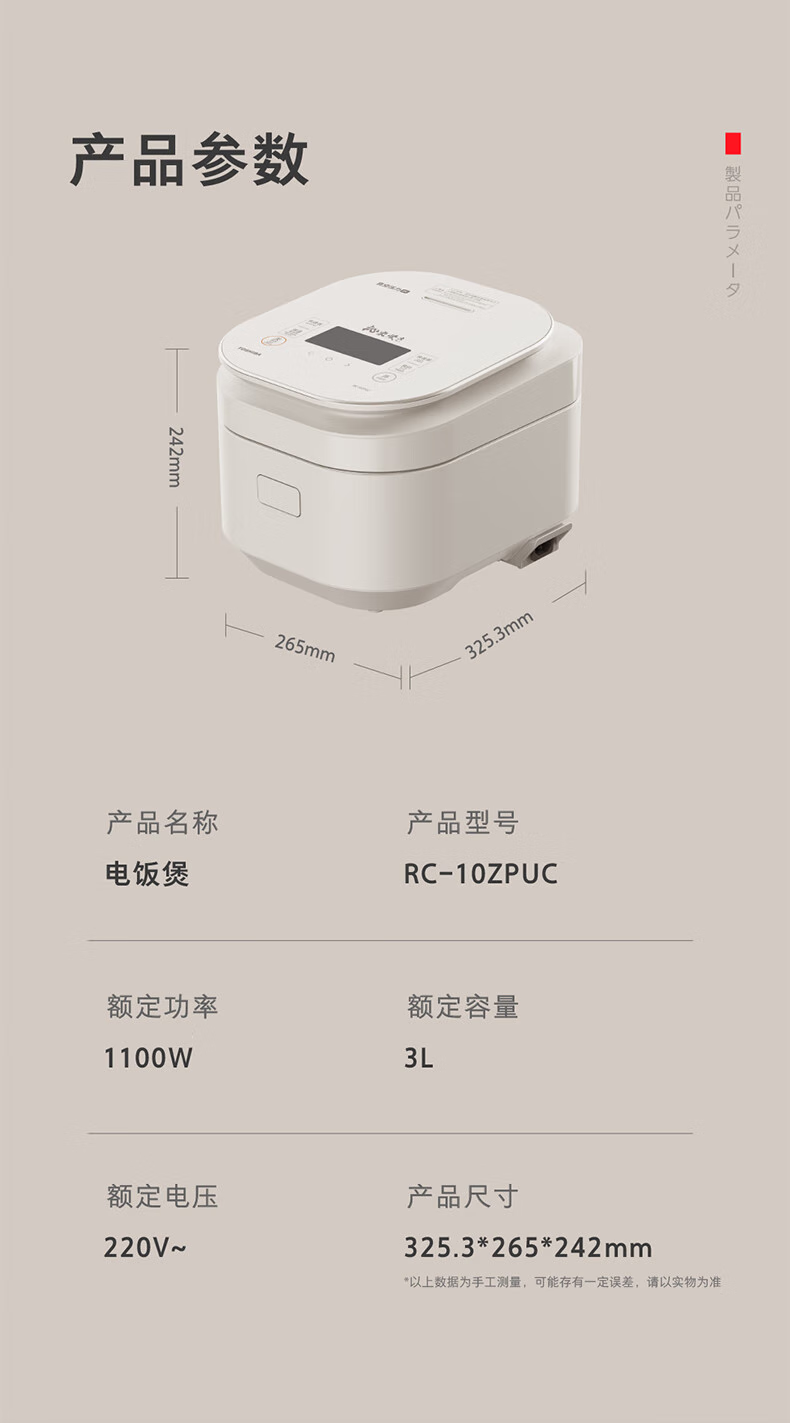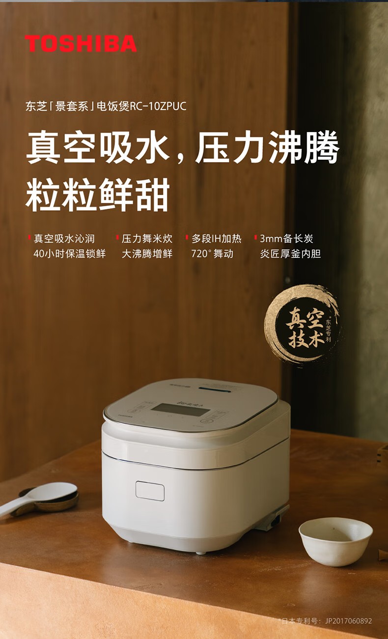 商品名称:(巨邦佑)R+ 东芝(TOSHIBA)电饭煲RC-10ZPUC真空沁米炊压力多段IH电饭煲景套系3L 2-5人 真空锁鲜40H 3MM铜釜内胆