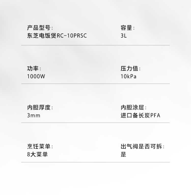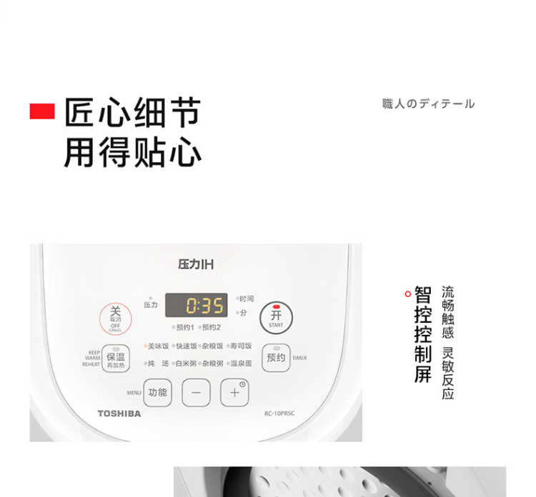 商品名称:(巨邦佑)R+东芝(TOSHIBA) 电饭煲RC-10PRSC(W)小吐司鲜饭煲 IH立体加热 3L3-4人进口备长炭内胆 白色