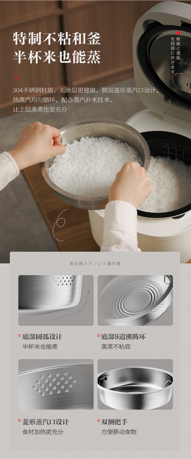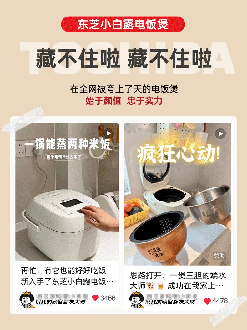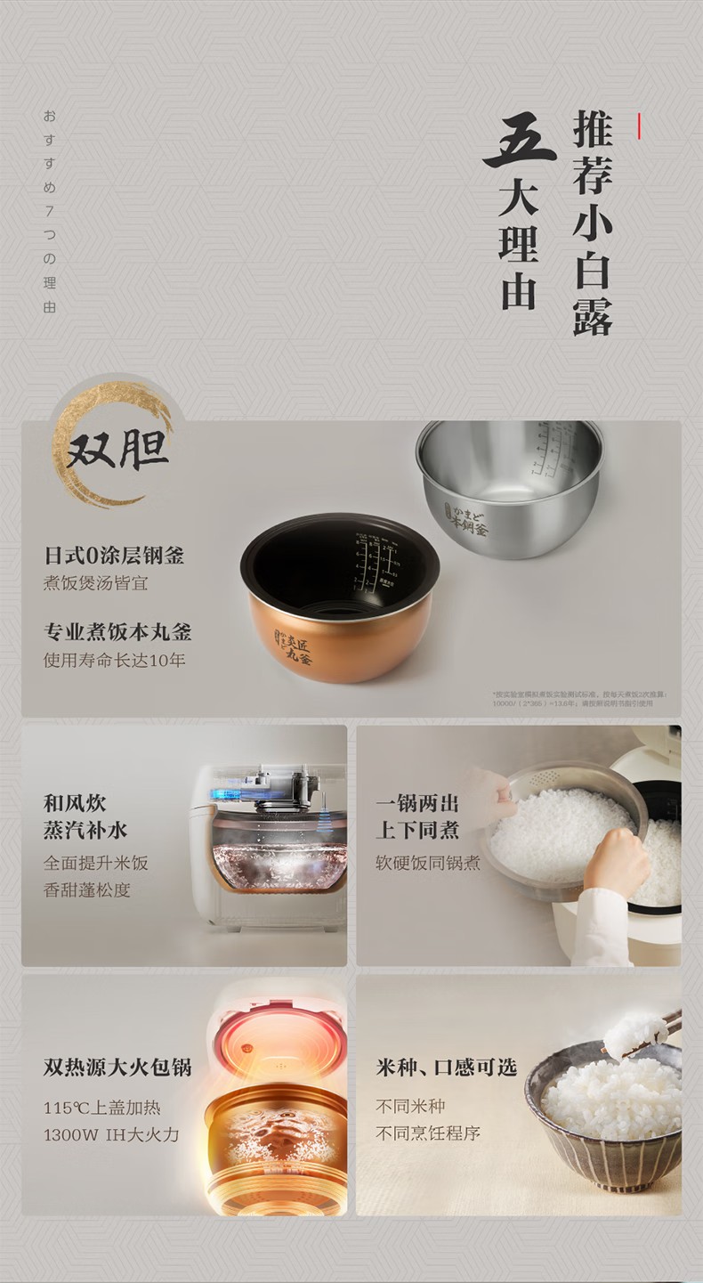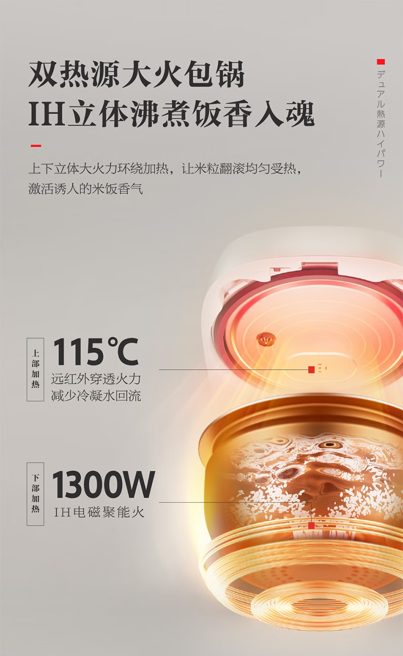 商品名称:(巨邦佑)R+ 东芝(TOSHIBA)电饭煲RC-15ISUC(WY) 小白露0涂层电饭煲3-4人 和风炊蒸汽补水技术 IH立体双热源 一煲两釜 4L 白色