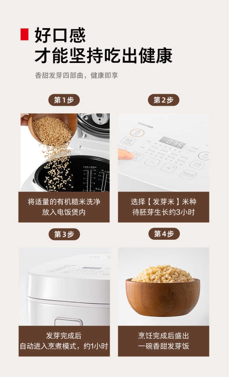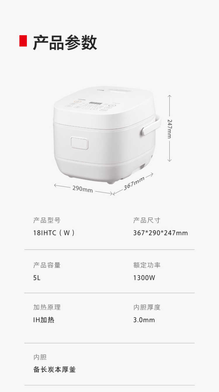 商品名称:(巨邦佑)R+东芝(TOSHIBA)IH电饭煲RC-18IHTC(W) 发芽米鲜饭煲日本进口涂层 备长炭本厚釜多功能电饭锅 5L 4-10人 白色