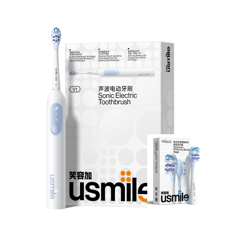商品名称:(中科惠橙)usmile笑容加 V1电动牙刷 漫山白+缓震亮白款牙刷头2支装 成人声波电动