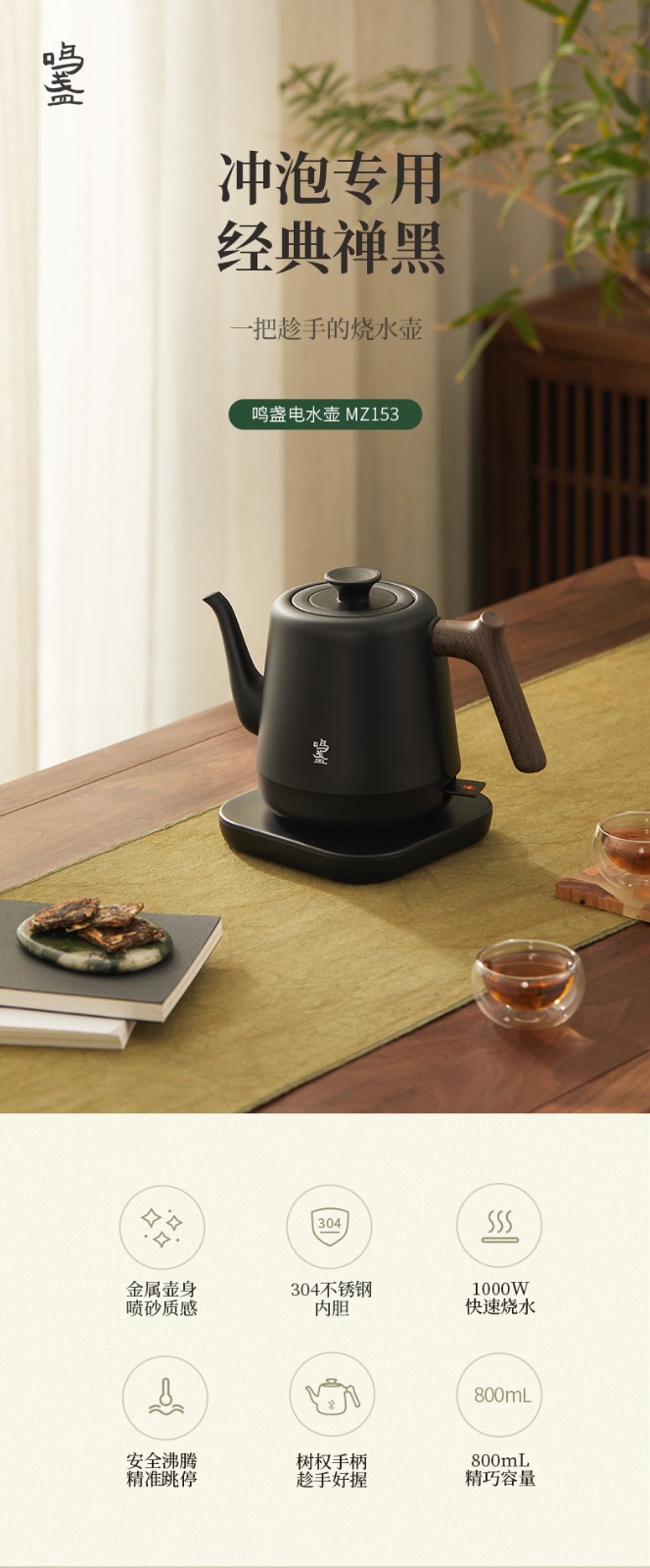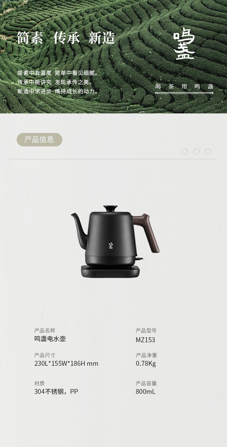 商品名称:(超运·禾贸)鸣盏电水壶MZ153 泡茶烧水壶 电热水壶 功夫茶壶 茶艺师专用电茶壶 智能茶具 磨砂工艺0.8L