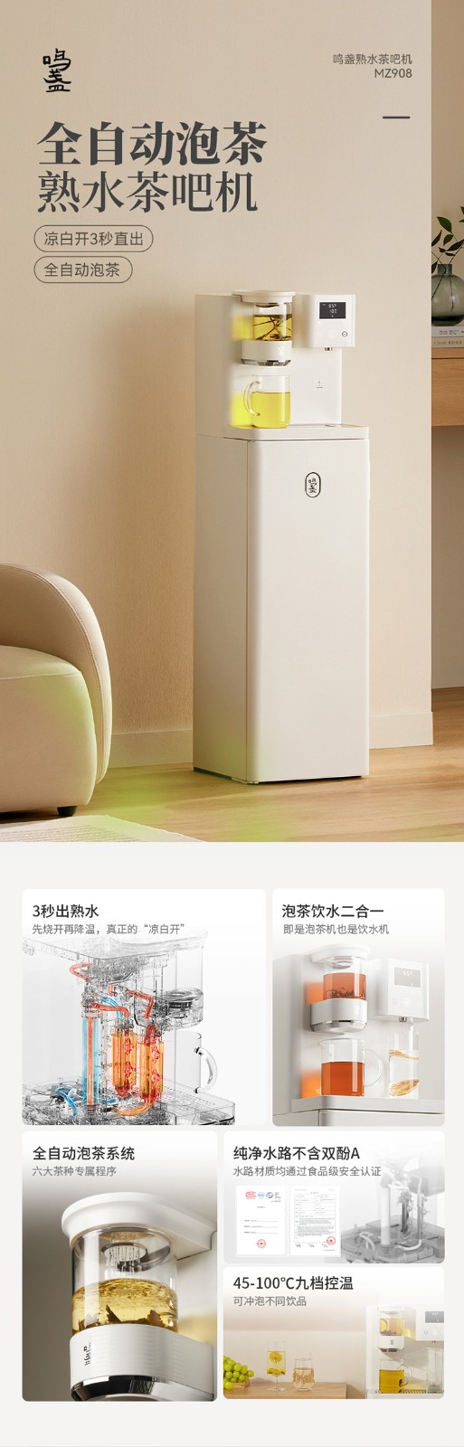 (超运·禾贸)鸣盏智能茶吧机 MZ908 饮水机家用高端茶吧机客厅一体柜 【即热速冷熟水技术】茶饮机
