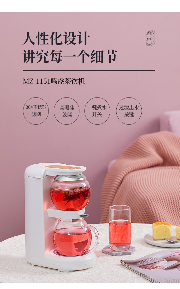 (超运·禾贸)鸣盏沙漏壶MZ-1151 养生壶闷茶电烧水壶玻璃花茶壶即热茶台一体机办公茶具套装泡茶器 0.5L
