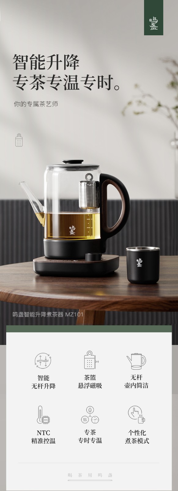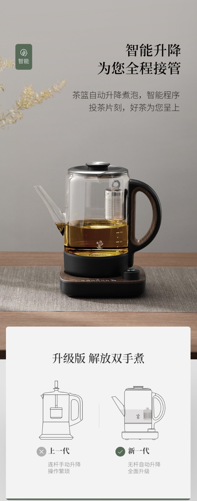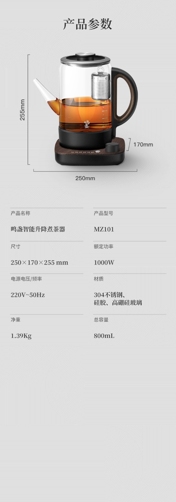 商品名称:(超运·禾贸)鸣盏升降煮茶器MZ101 智能升降煮茶器加厚玻璃专茶专温专时煮茶养生壶一键智能自动懒人茶壶烧水电水壶 800ml
