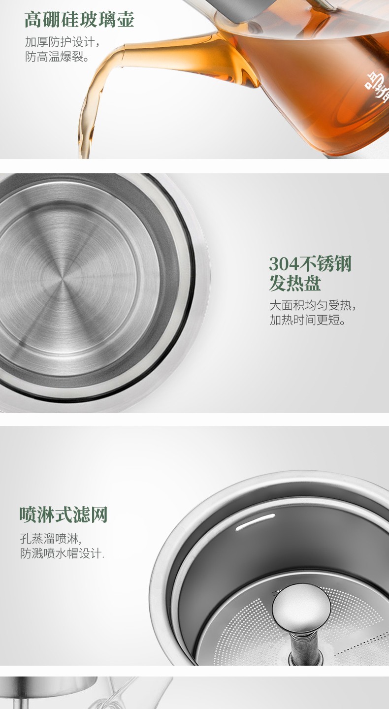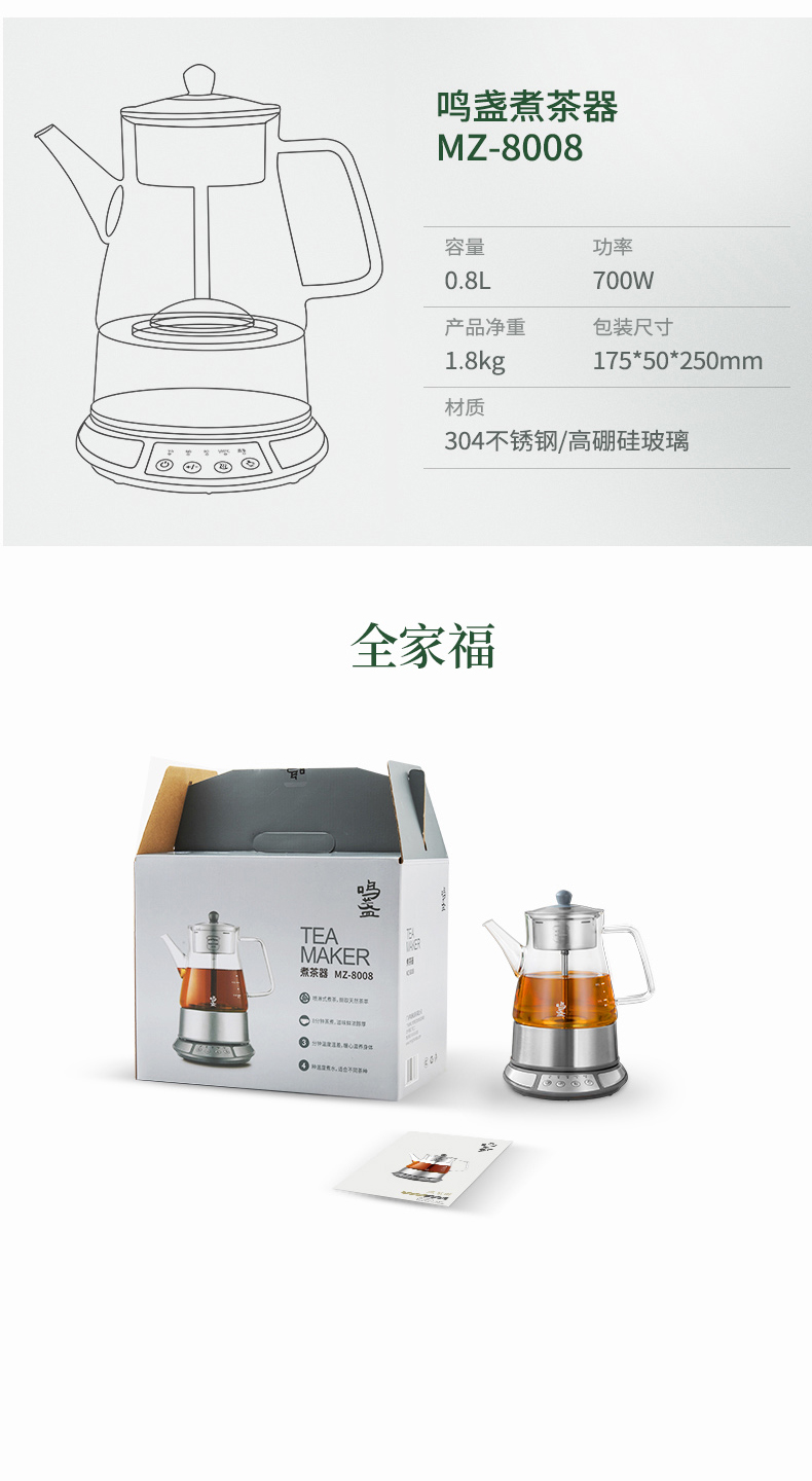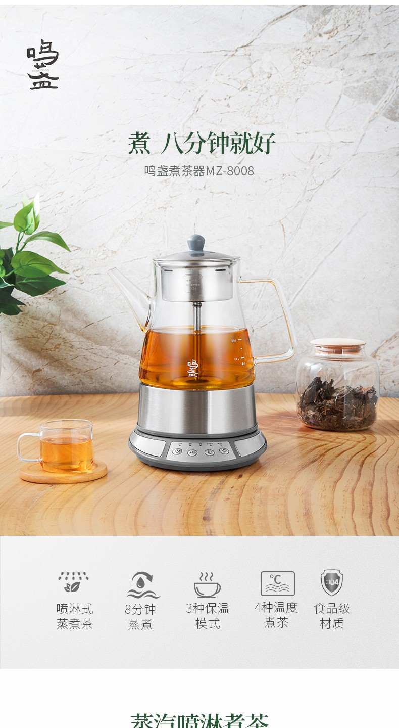 商品名称:(超运·禾贸)鸣盏煮茶器MZ-8008 多功煮茶壶喷淋式煮茶壶玻璃电水壶热水壶