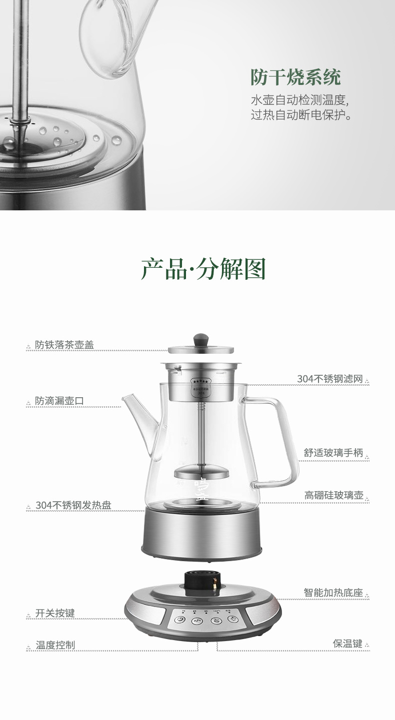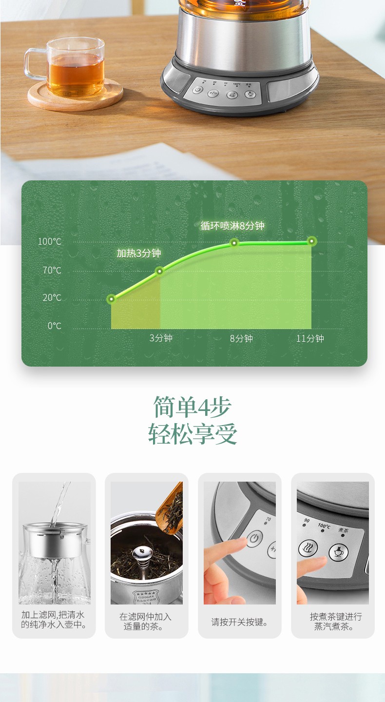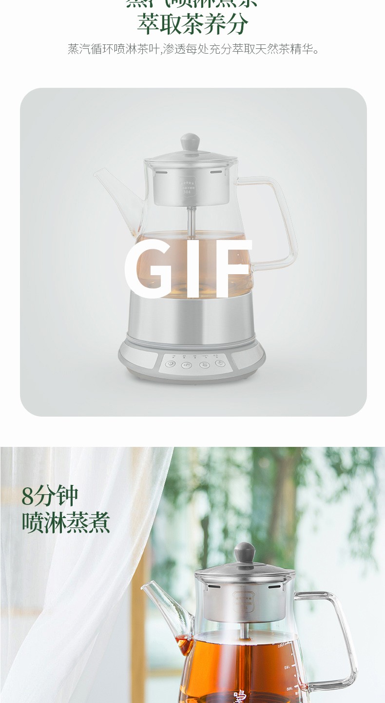(超运·禾贸)鸣盏煮茶器MZ-8008 多功煮茶壶喷淋式煮茶壶玻璃电水壶热水壶