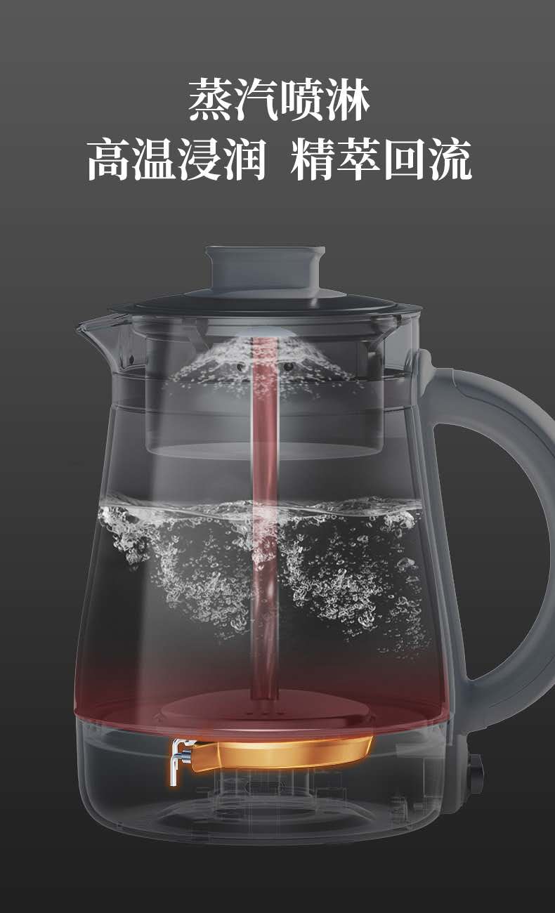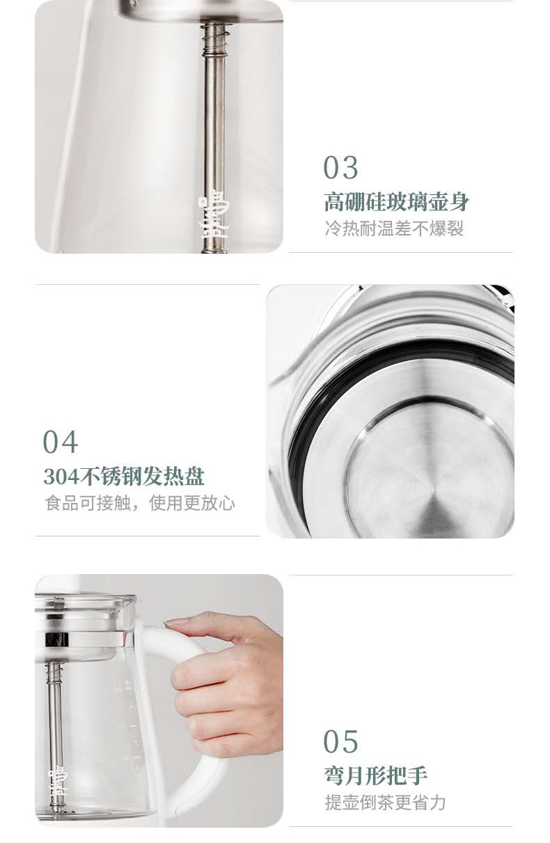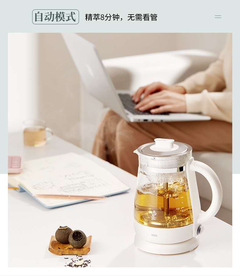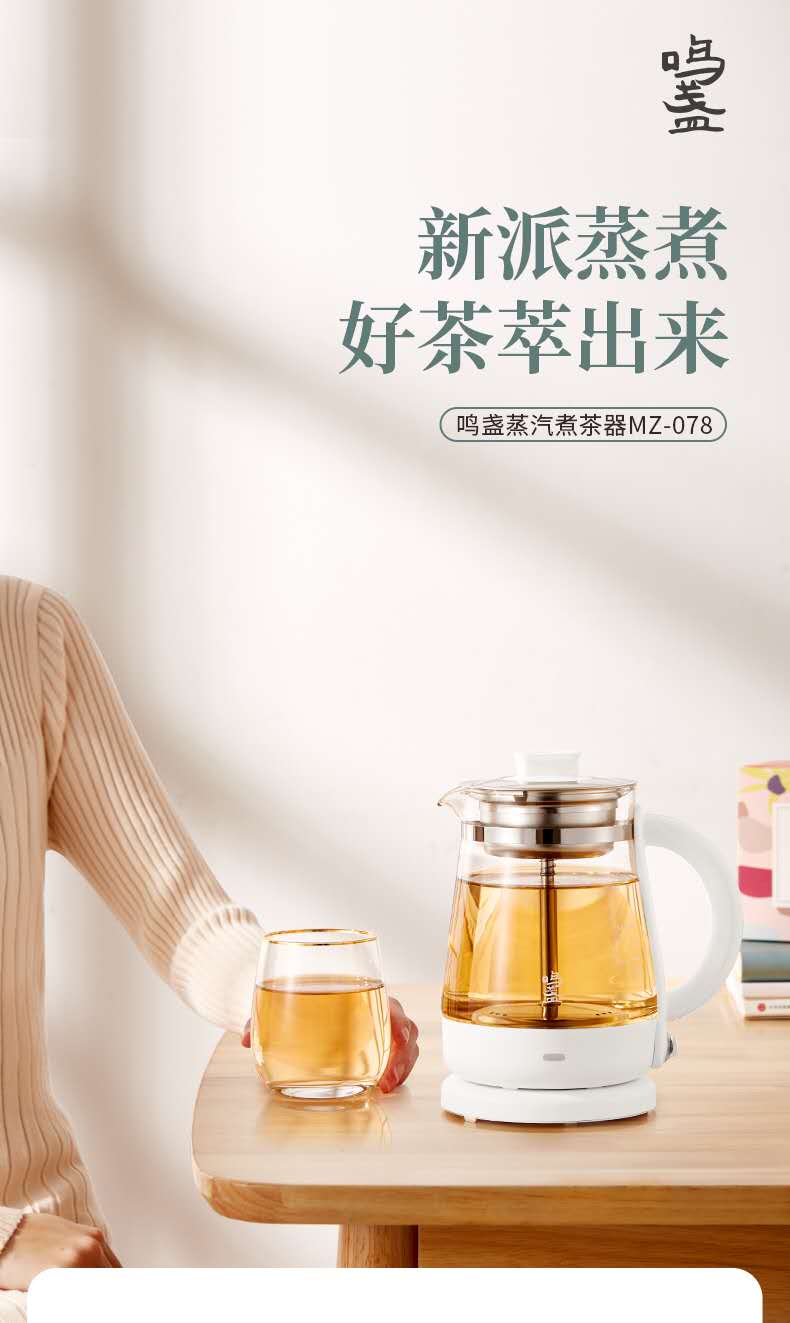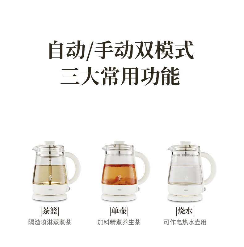 (超运·禾贸)鸣盏煮茶器MZ-078白 自动保温多功能加厚玻璃蒸汽养生壶煮茶壶