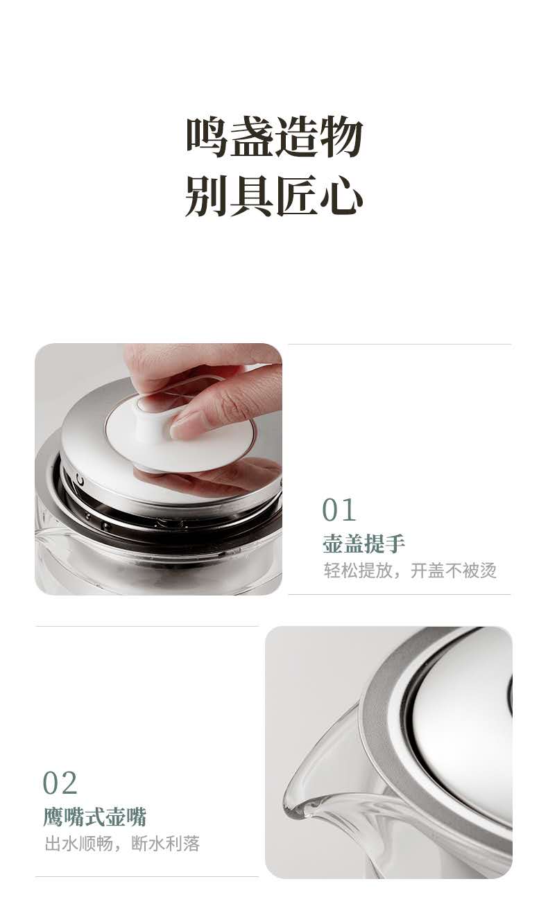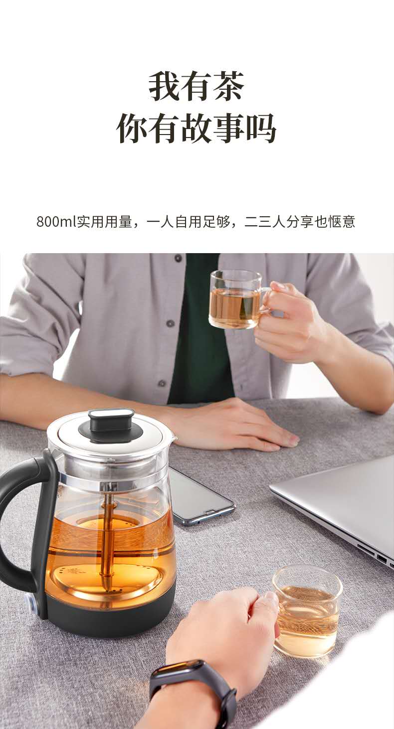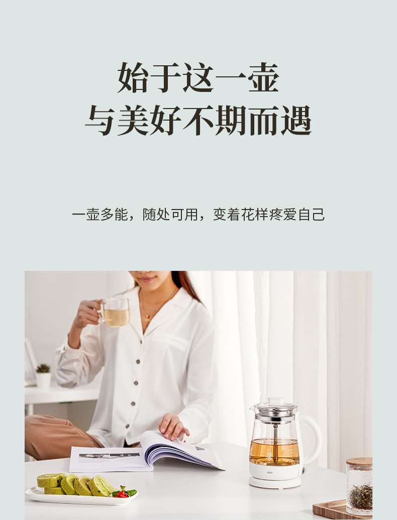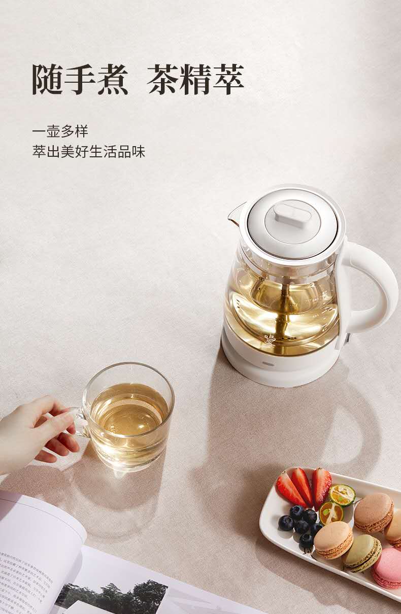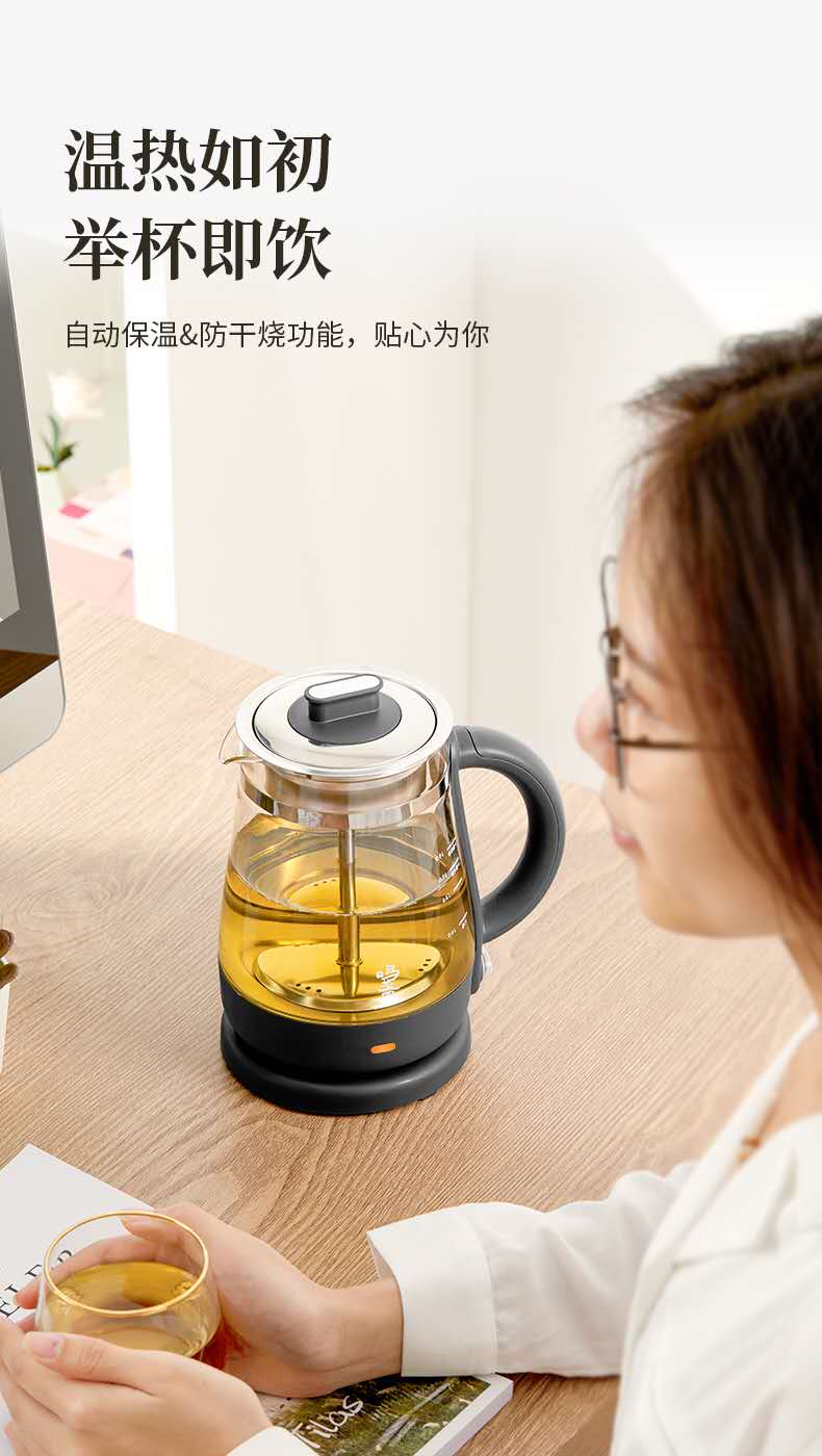 (超运·禾贸)鸣盏煮茶器MZ-078白 自动保温多功能加厚玻璃蒸汽养生壶煮茶壶