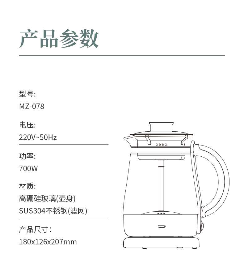 商品名称:(超运·禾贸)鸣盏煮茶器MZ-078白 自动保温多功能加厚玻璃蒸汽养生壶煮茶壶