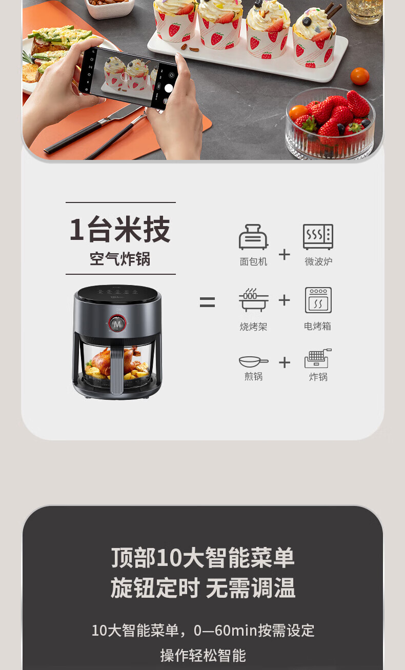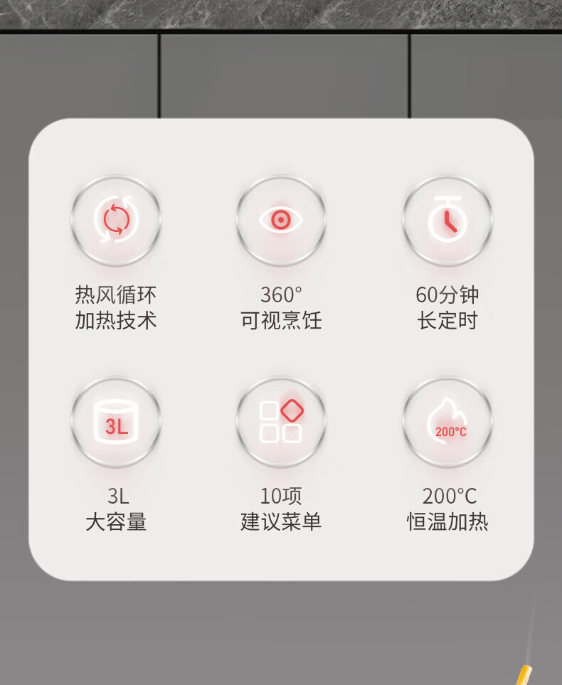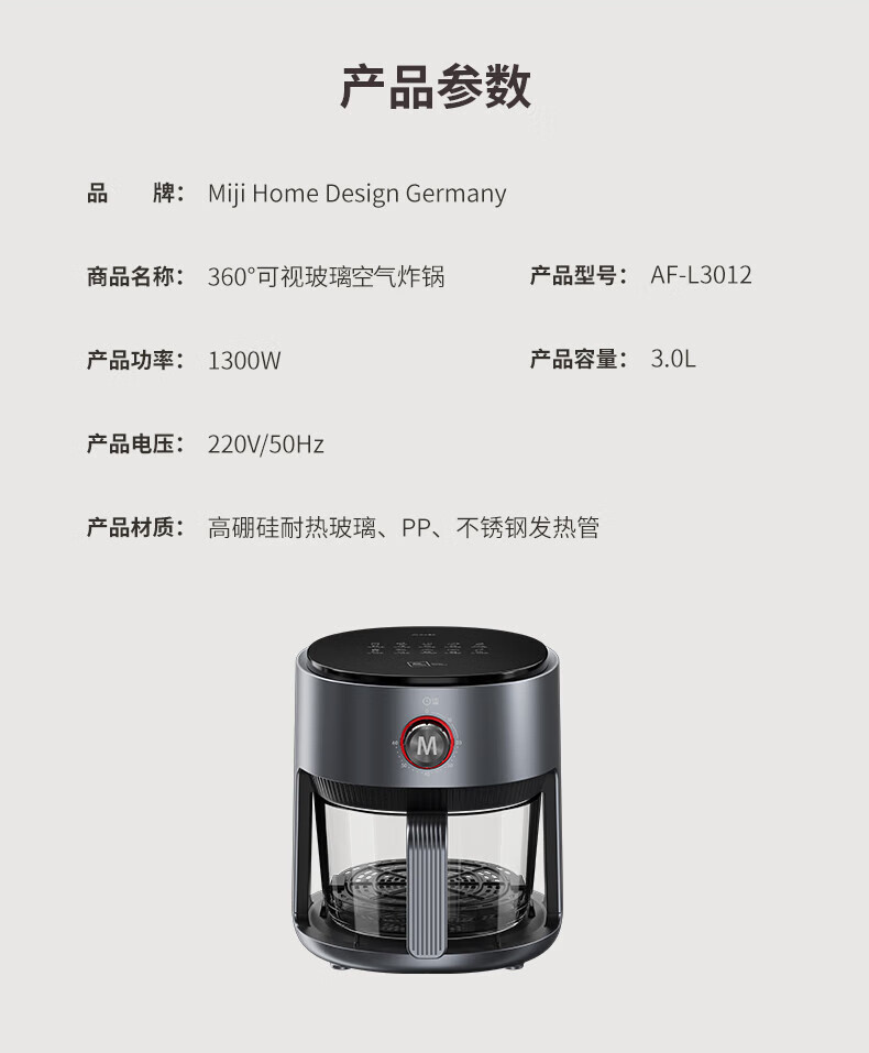 商品名称:(世星阳光) 米技 360°可视玻璃空气炸锅 AF-L3012 3升