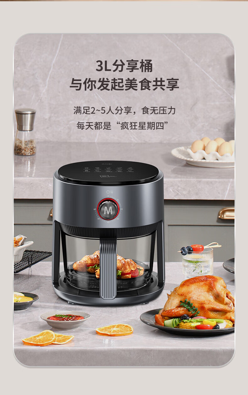 (世星阳光) 米技 360°可视玻璃空气炸锅 AF-L3012 3升