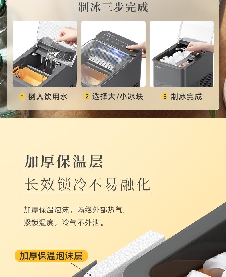 商品名称:(世星阳光)东菱制冰机DL-M1 家用冰块机小型造冰机厨房小家电办公室冷饮冰块制作机急速出冰自清洁