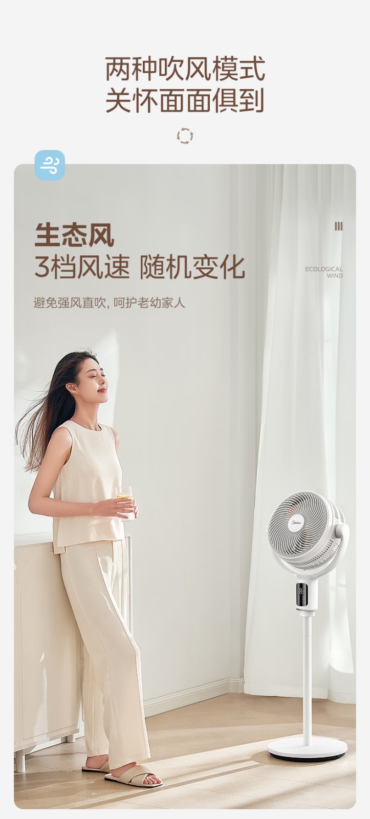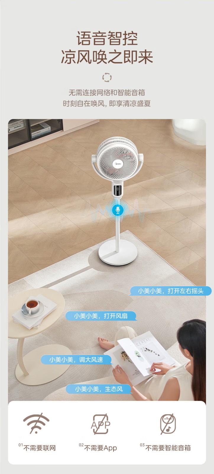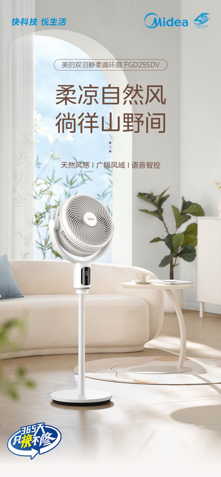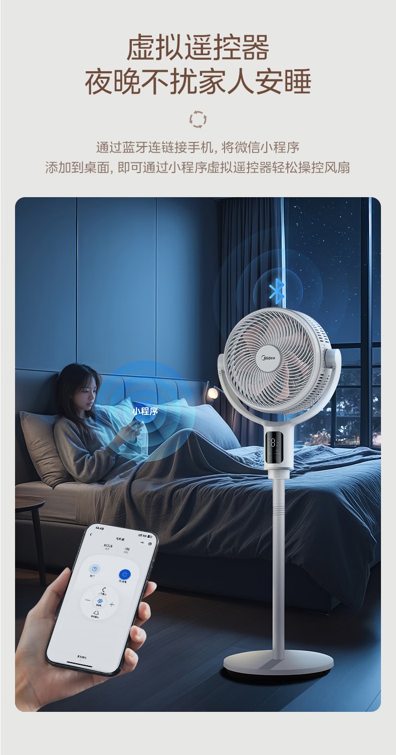 (巨邦佑)R+美的(Midea)空气循环扇FGD25SDV节能低噪轻音双扇叶屏显3D蓝牙语音智控遥控落地扇25年新品