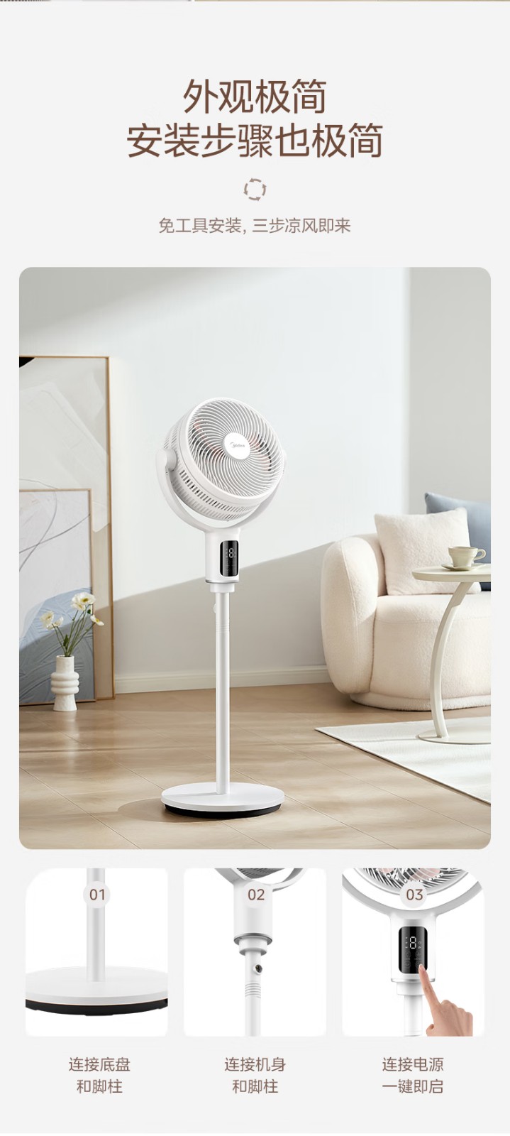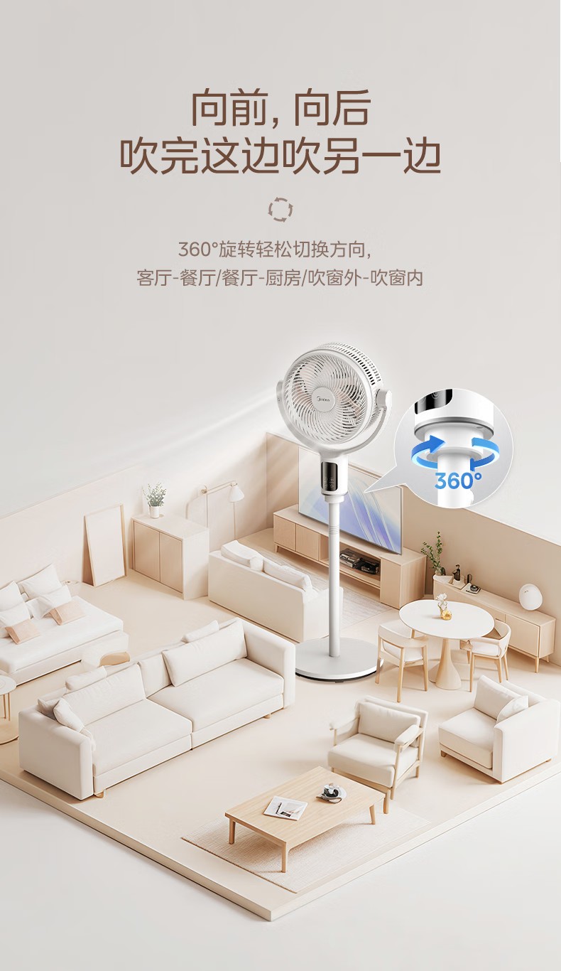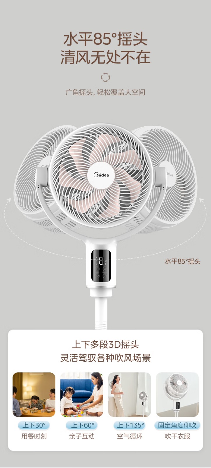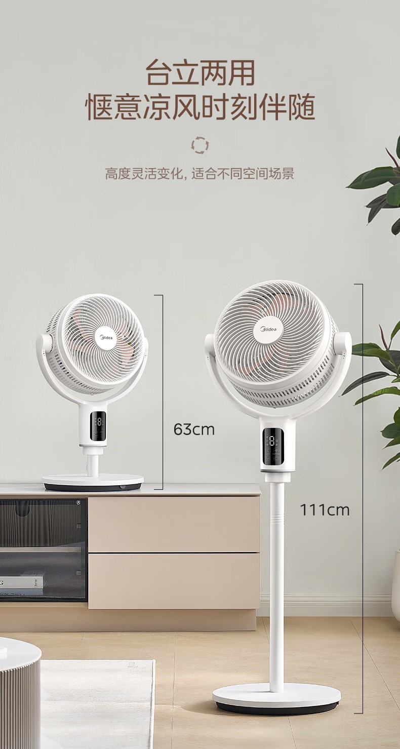 (巨邦佑)R+美的(Midea)空气循环扇FGD25SDV节能低噪轻音双扇叶屏显3D蓝牙语音智控遥控落地扇25年新品