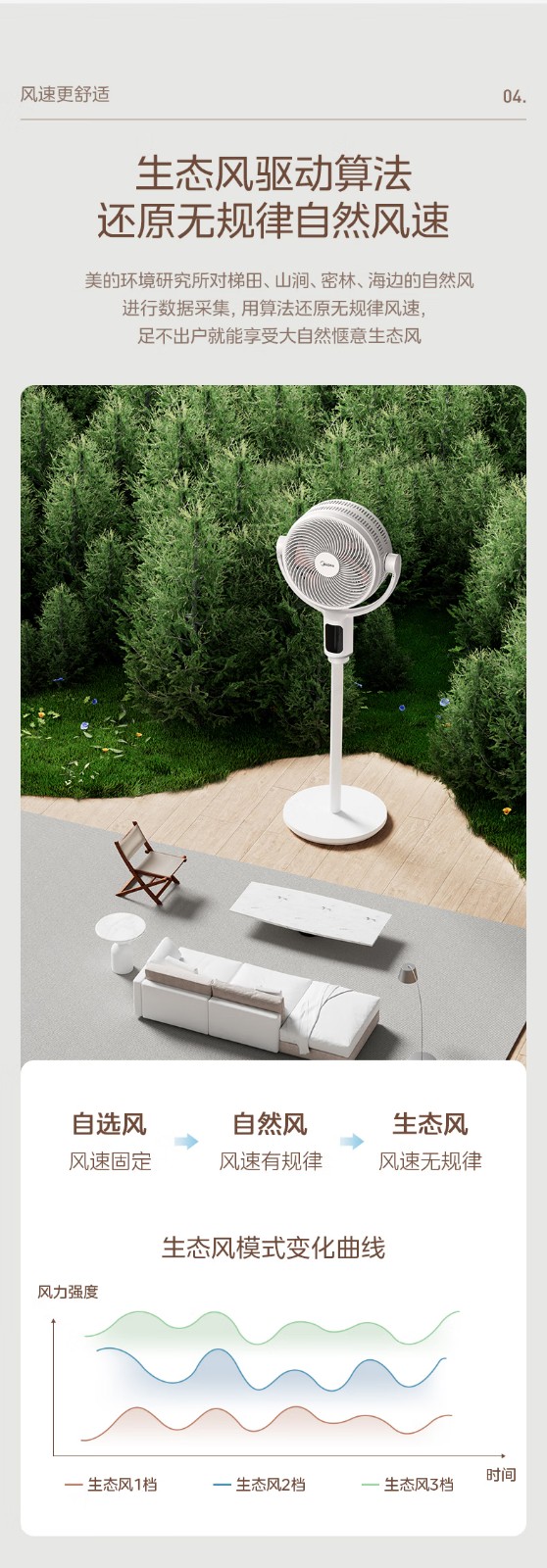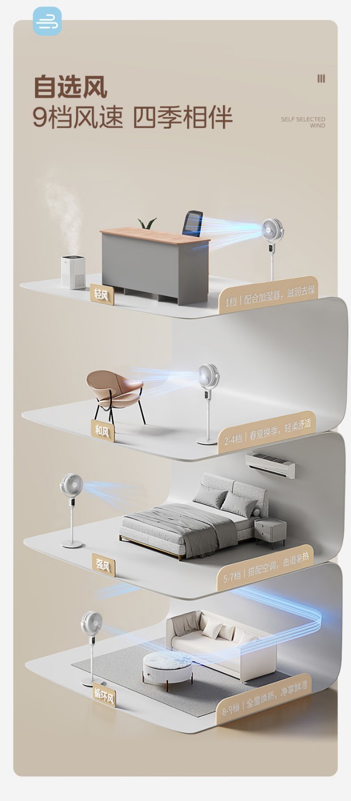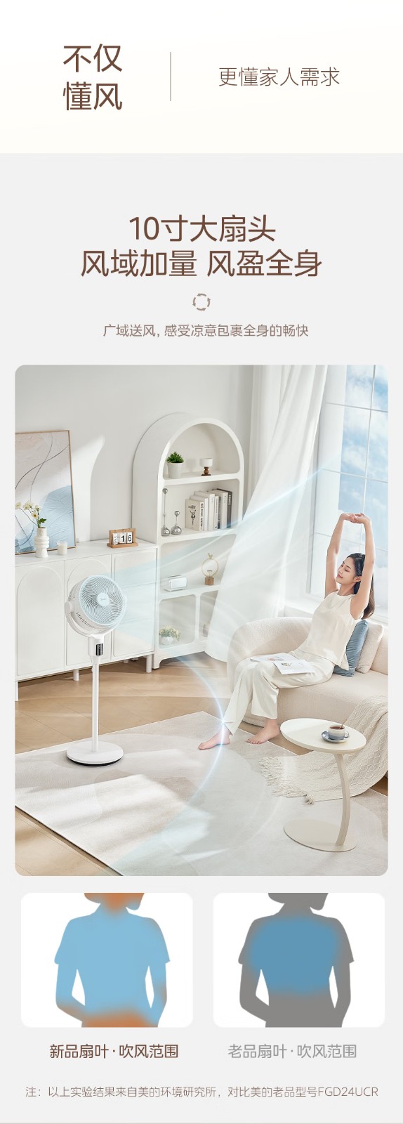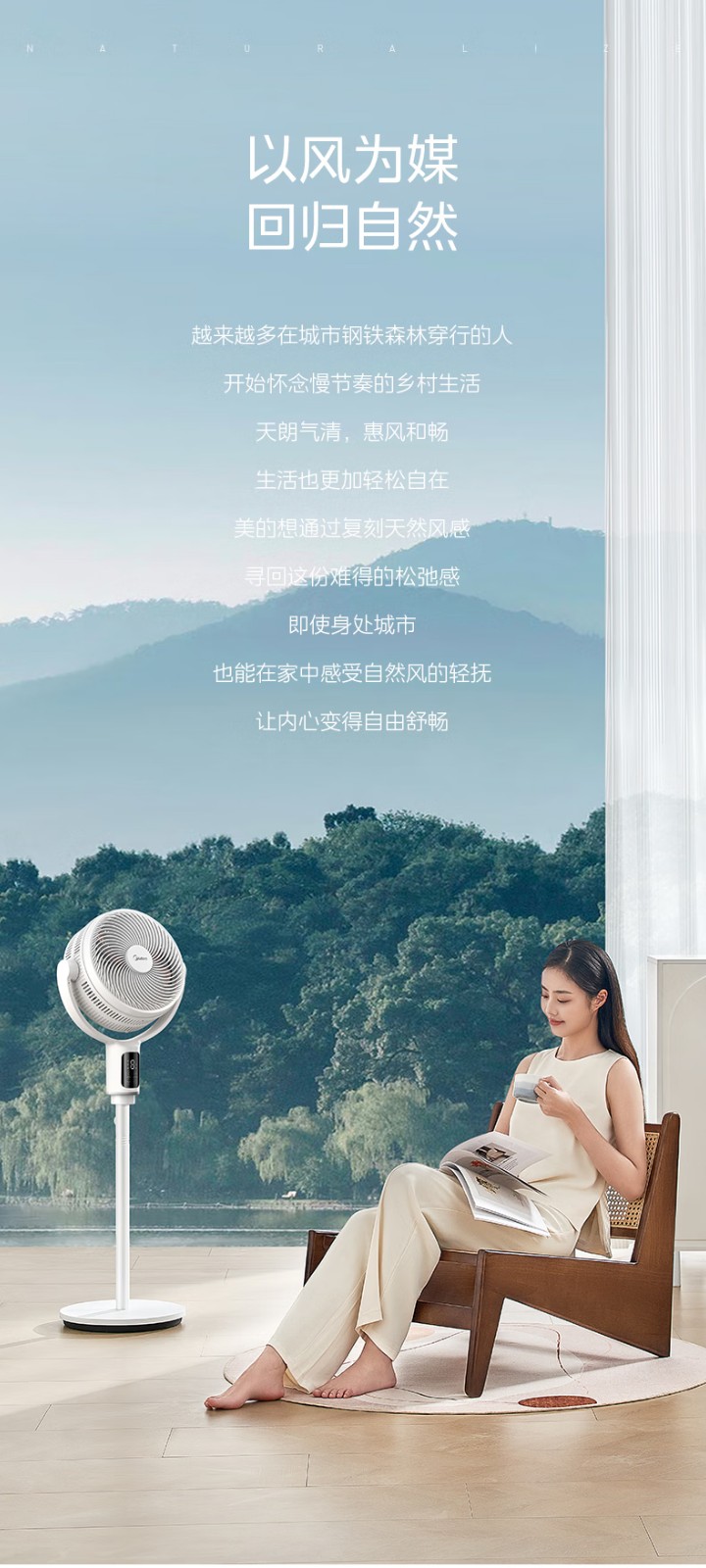 (巨邦佑)R+美的(Midea)空气循环扇FGD25SDV节能低噪轻音双扇叶屏显3D蓝牙语音智控遥控落地扇25年新品