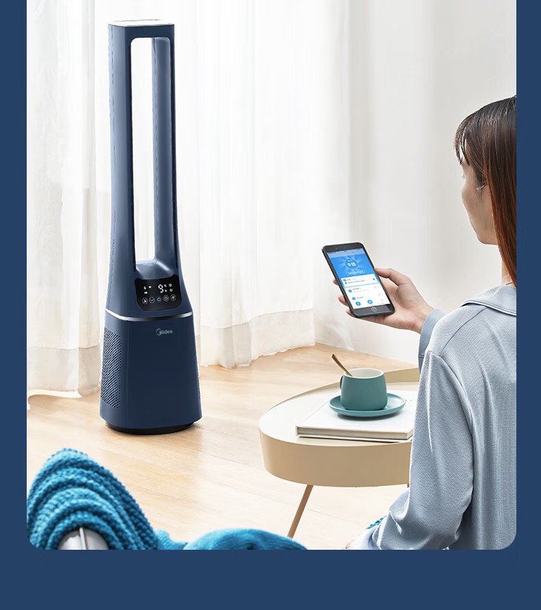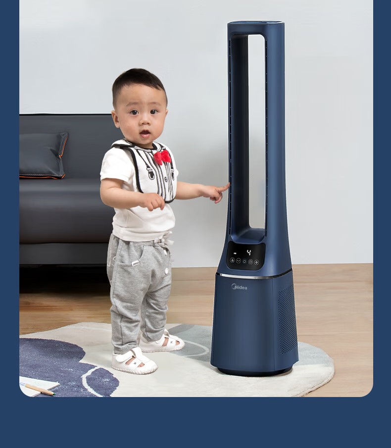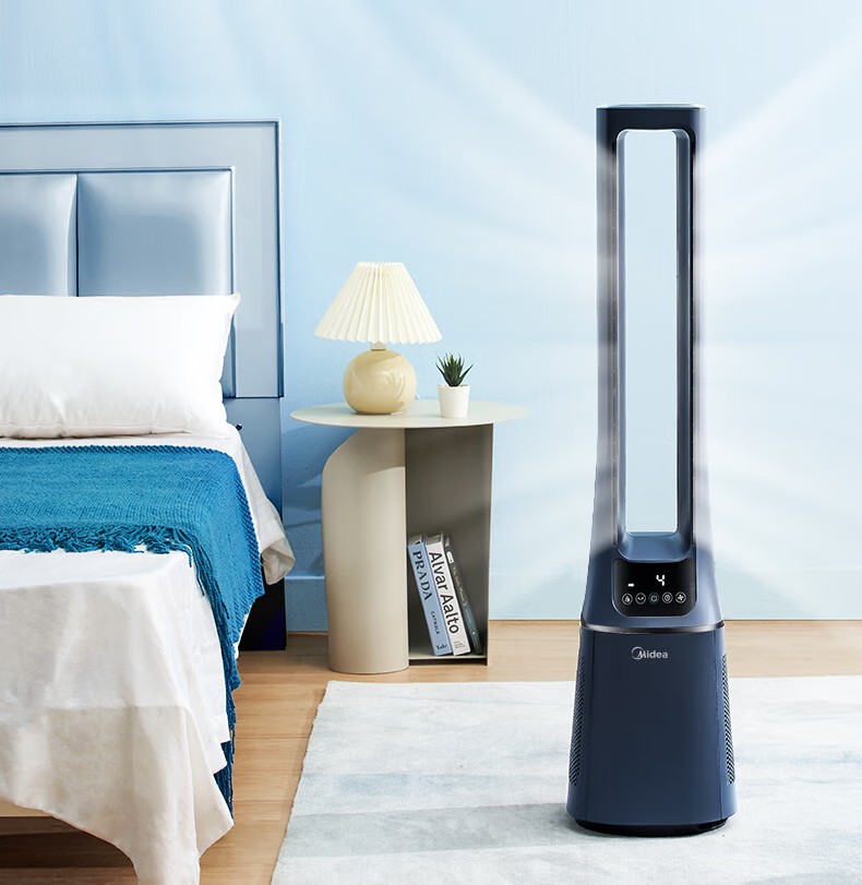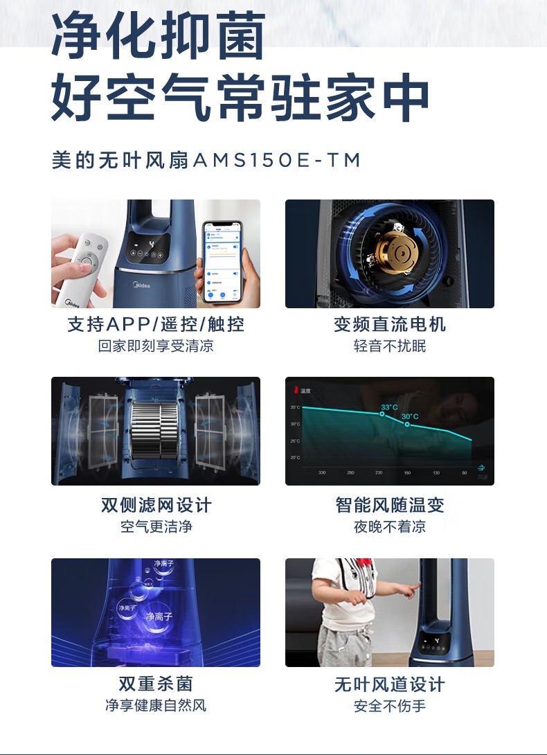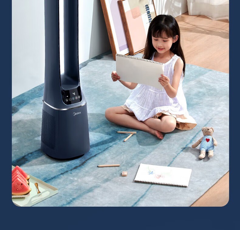 (巨邦佑)R+美的(Midea)无叶风扇AMS150E-TM落地扇智能定时轻音安静宿舍遥控循环风随温变大风力 【SPI净离子】