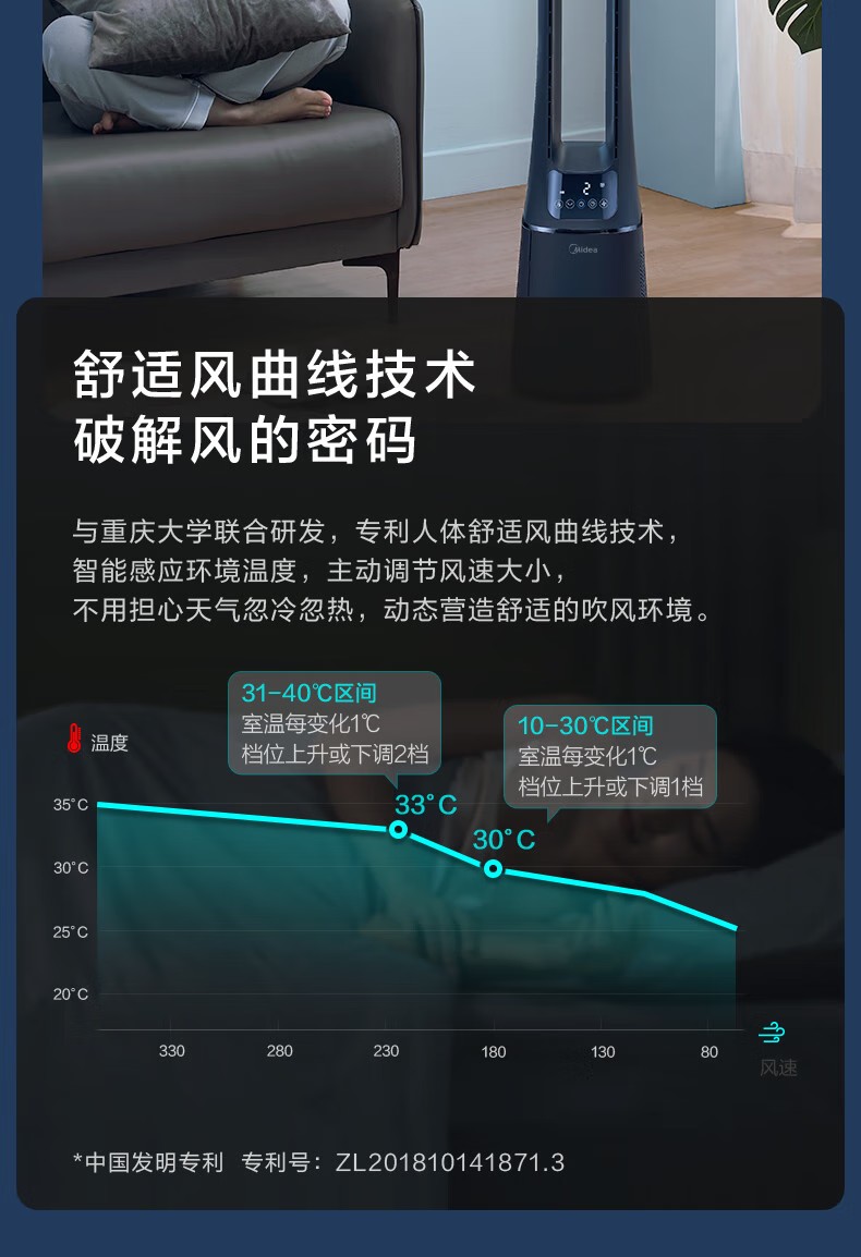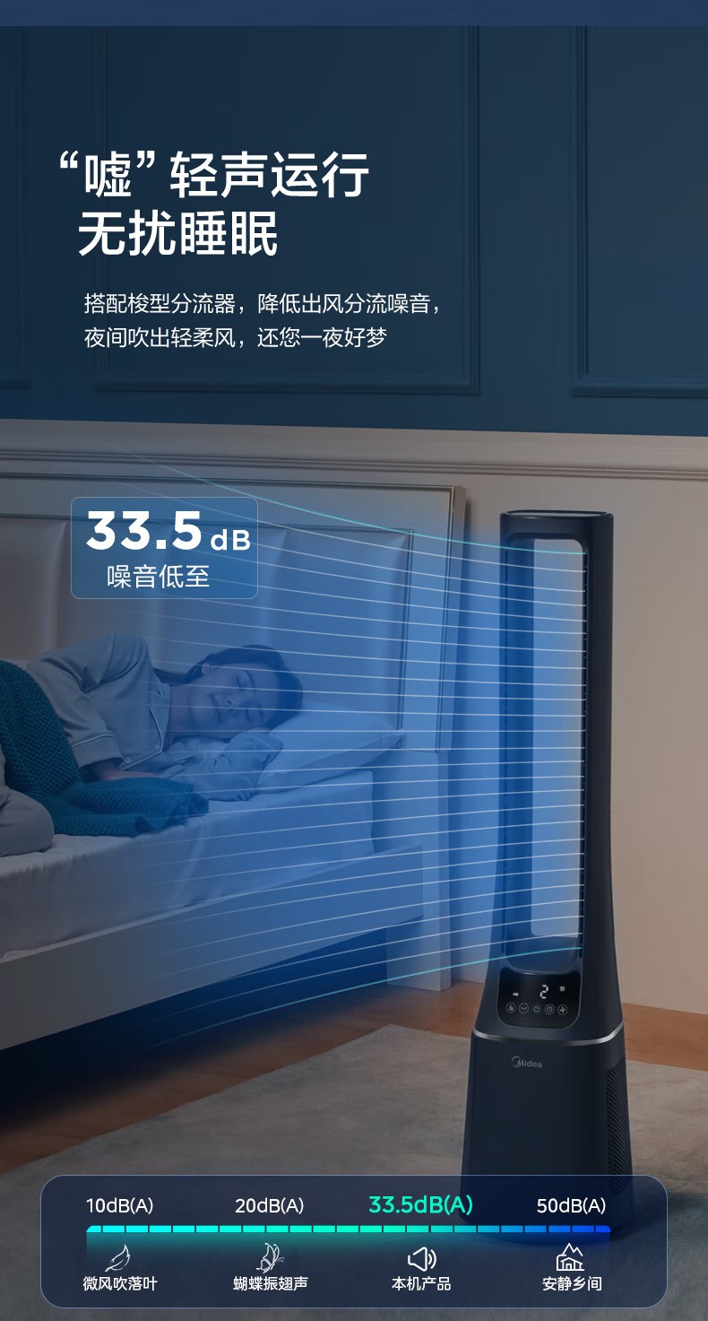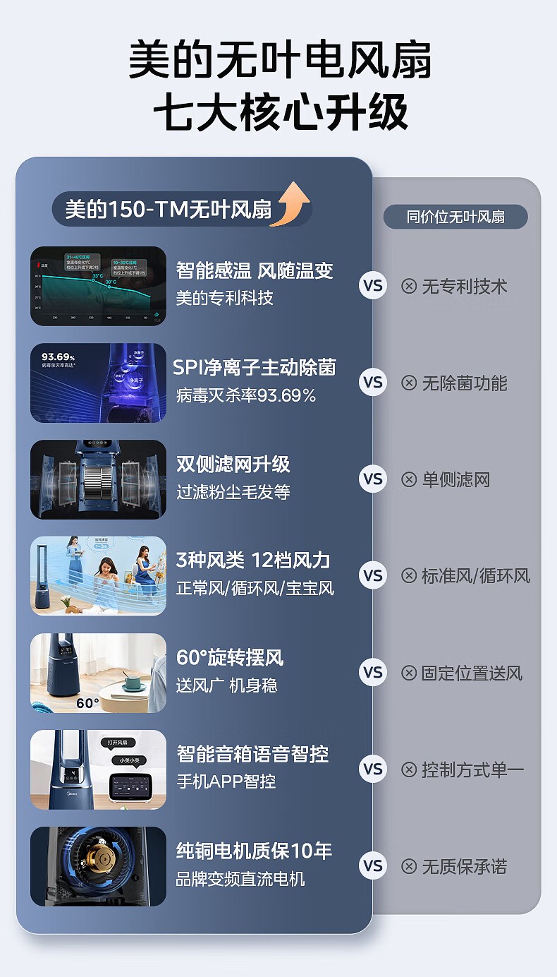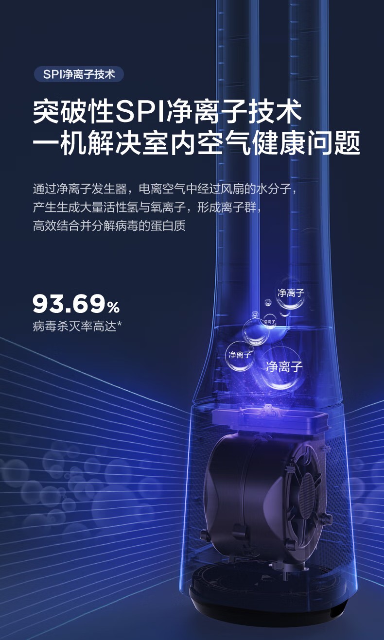 (巨邦佑)R+美的(Midea)无叶风扇AMS150E-TM落地扇智能定时轻音安静宿舍遥控循环风随温变大风力 【SPI净离子】