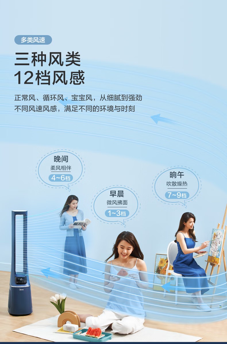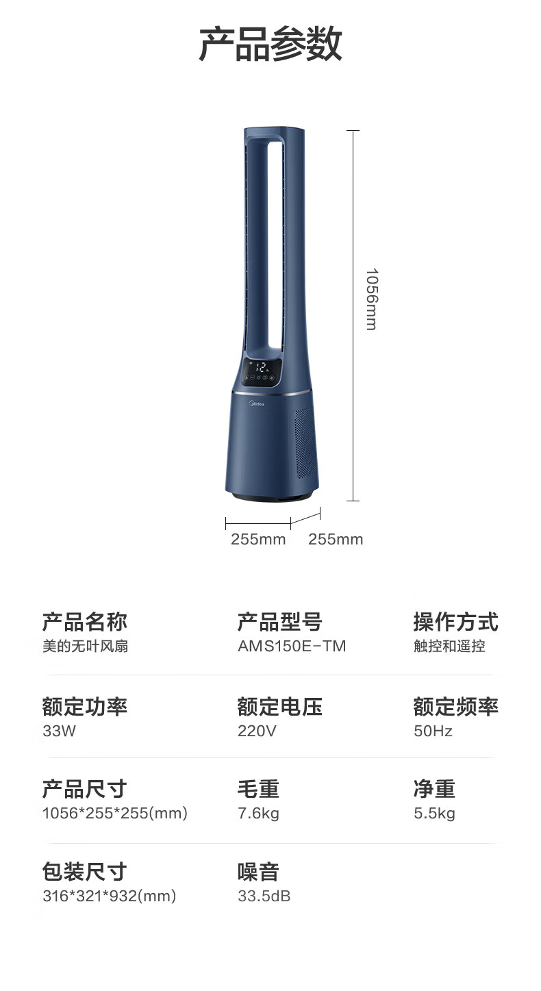 商品名称:(巨邦佑)R+美的(Midea)无叶风扇AMS150E-TM落地扇智能定时轻音安静宿舍遥控循环风随温变大风力 【SPI净离子】