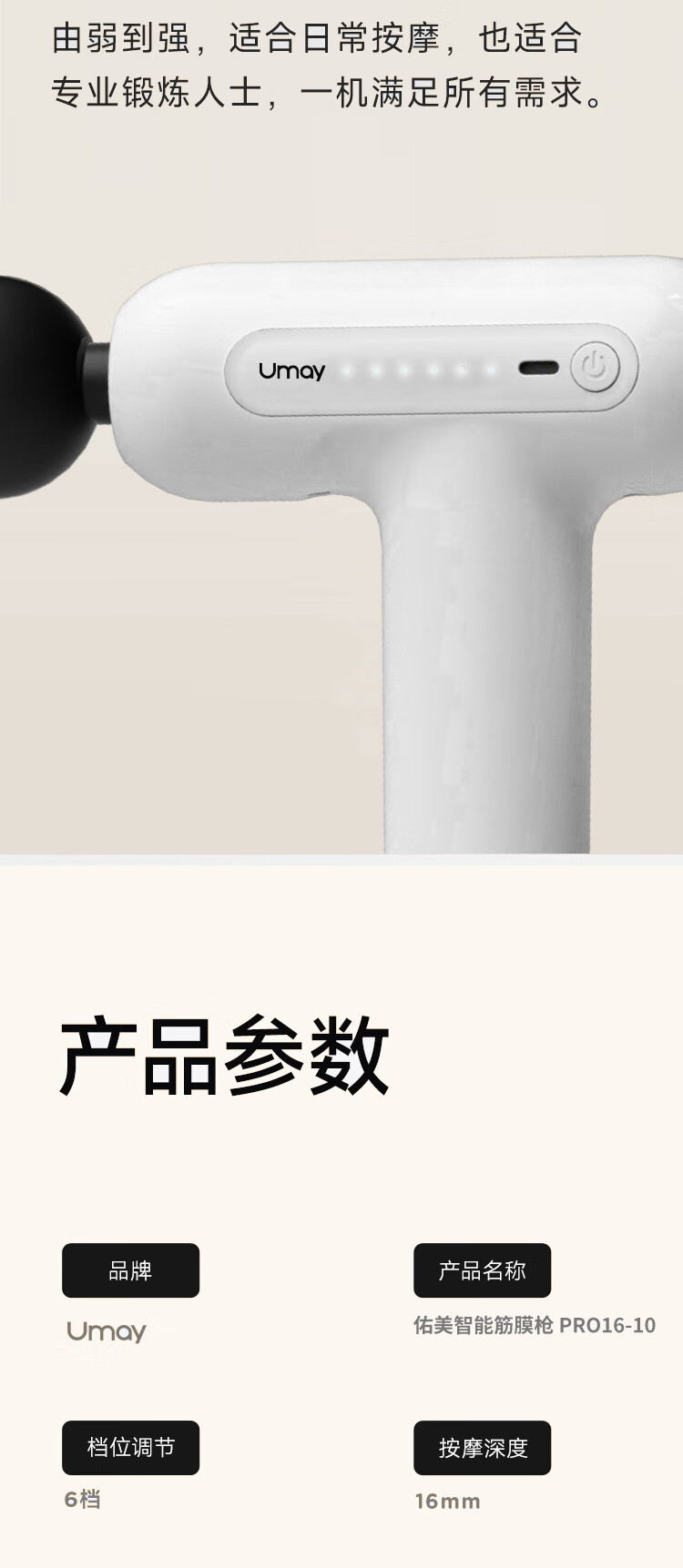 商品名称:(巨邦佑)BJ+Umay佑美智能筋膜枪PRO16-10 舒适按摩办公解压疲劳舒缓超长待机