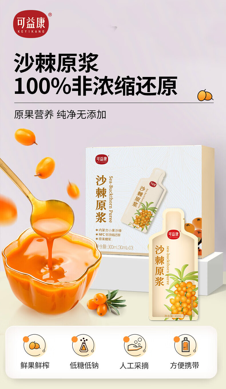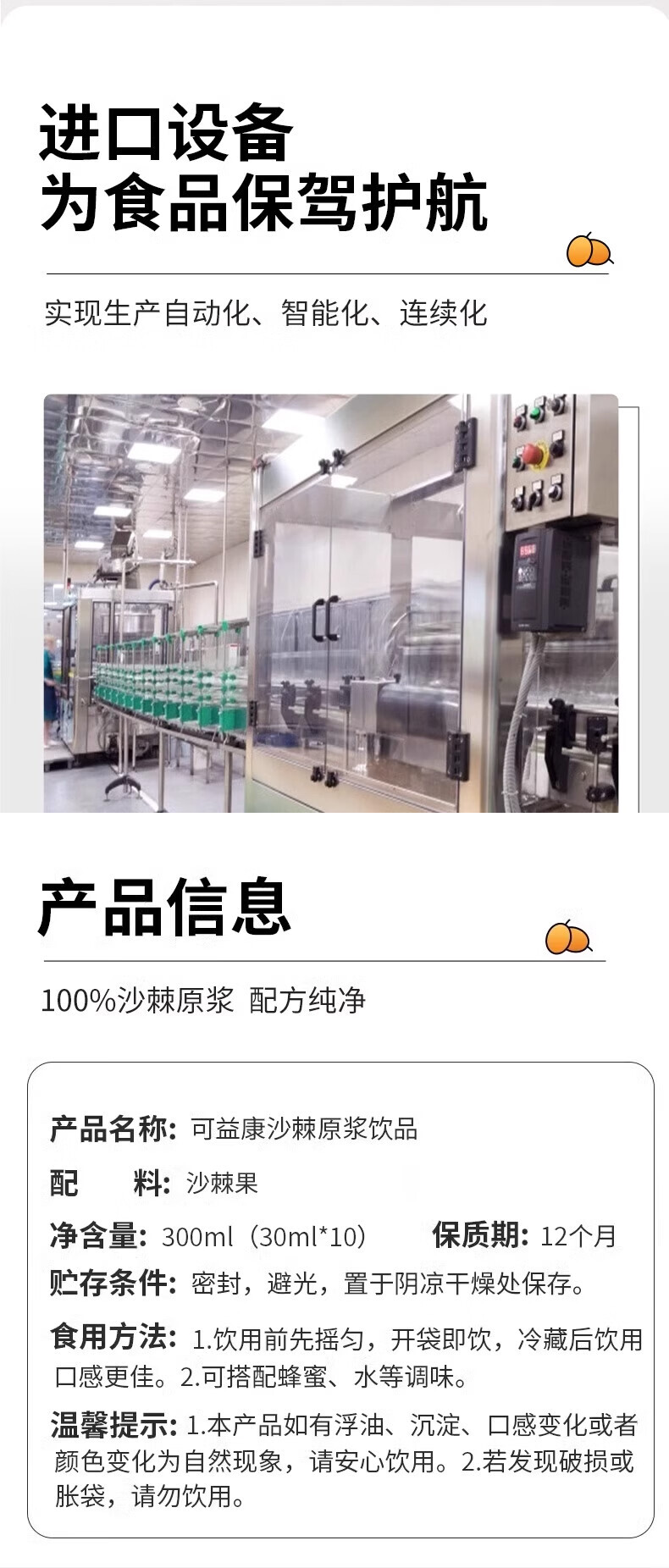 商品名称:正大 (CP)可益康沙棘原浆饮品300ml鲜榨沙棘汁NFC满满VC含沙棘油送长辈父母母亲节礼盒【全国包邮】