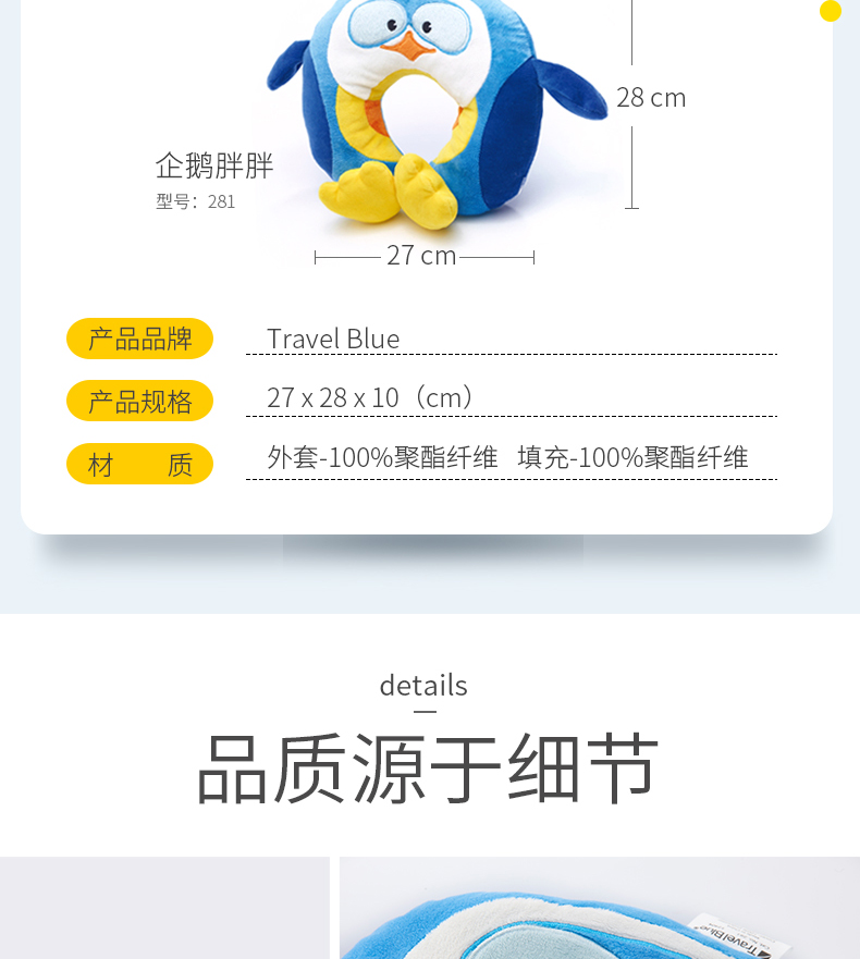 商品名称:(超运·禾贸)英国蓝旅Travel Blue企鹅胖胖281 可爱儿童脖子多功能u型枕靠枕卡通玩偶颈椎汽车头枕飞机旅行枕