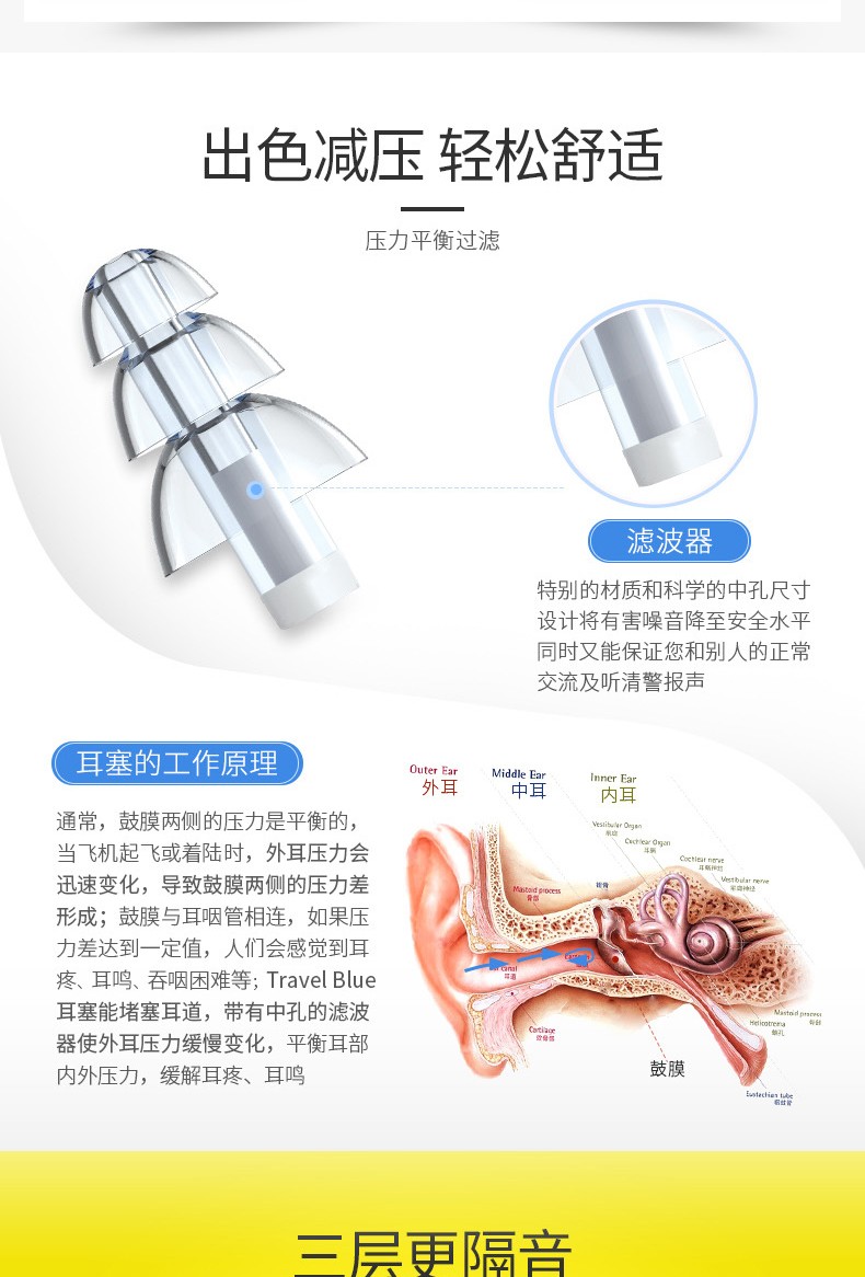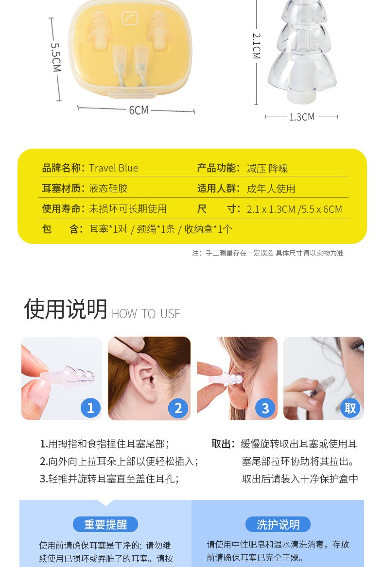商品名称:(超运·禾贸)英国蓝旅Travel Blue液态硅胶耳塞 493白色 专业航空飞行防耳鸣耳痛降噪减压耳塞柔软硅胶防丢失颈绳