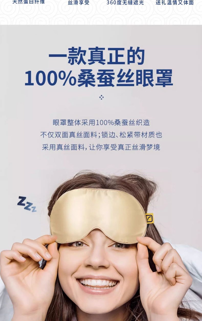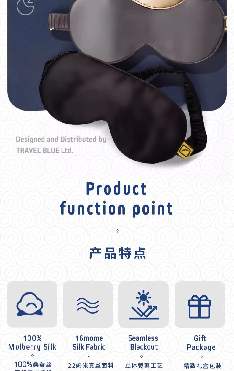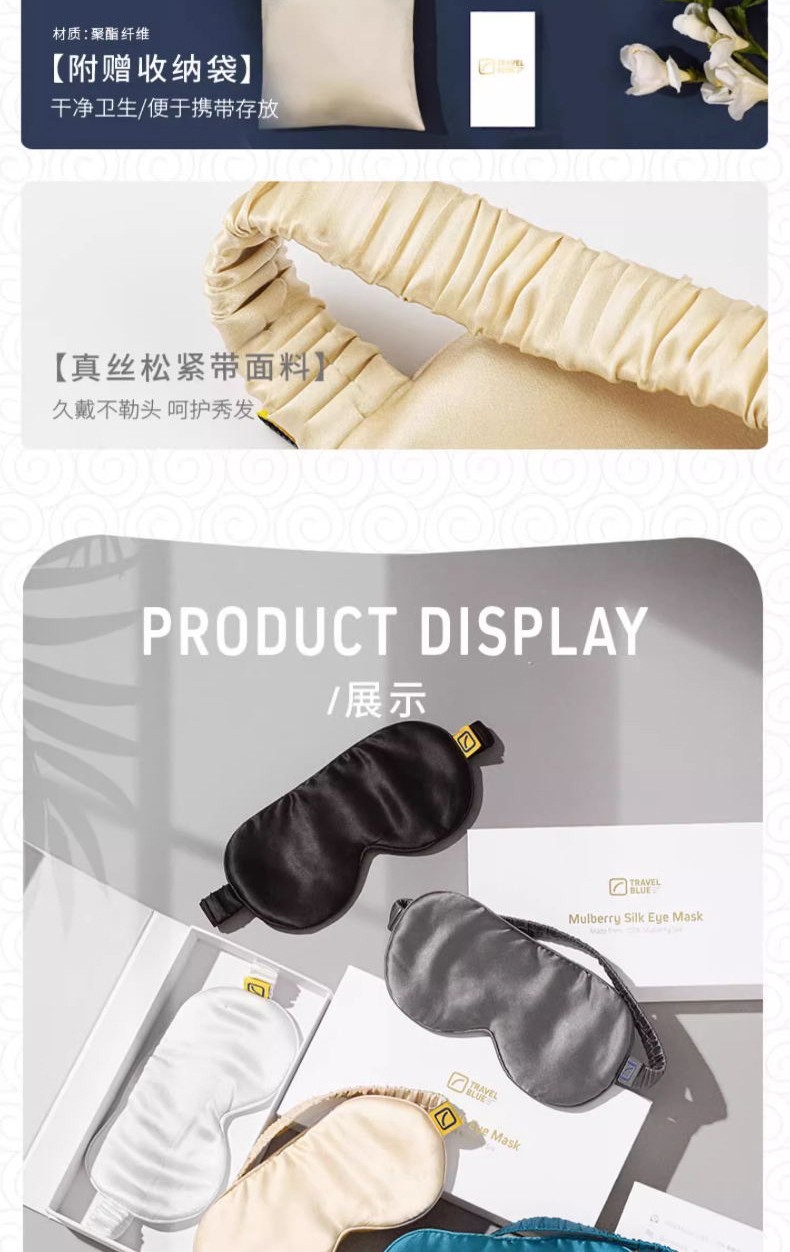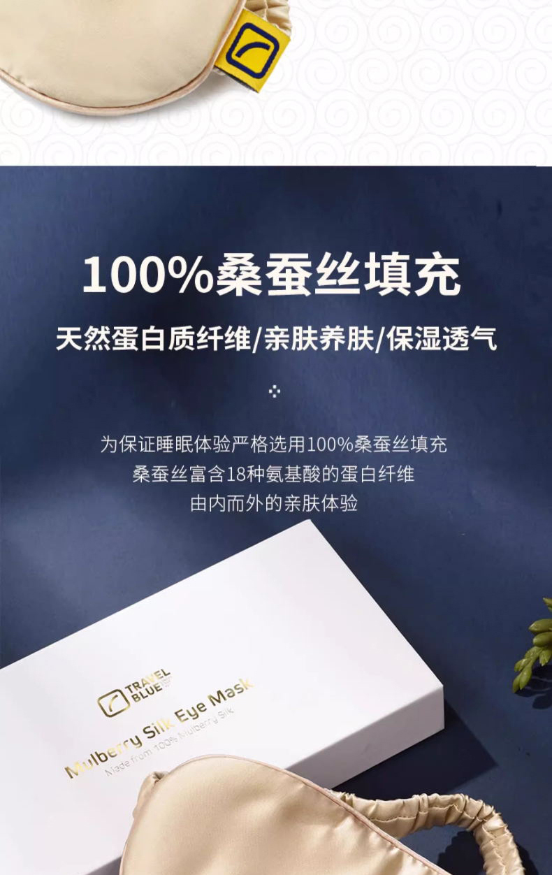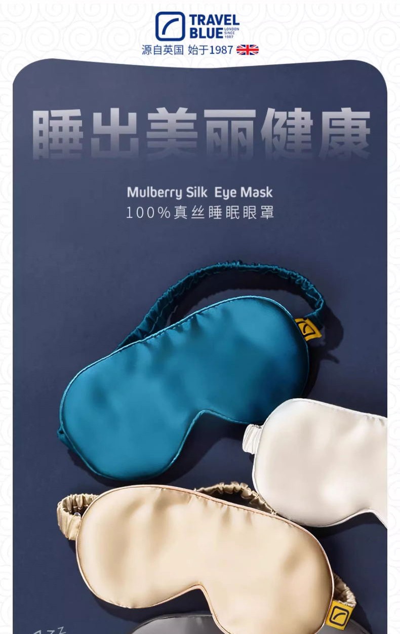 (超运·禾贸)英国蓝旅Travel Blue桑蚕丝眼罩100%真丝眼罩睡眠遮光透气桑蚕丝填充送礼高端奢品礼盒457 香槟色