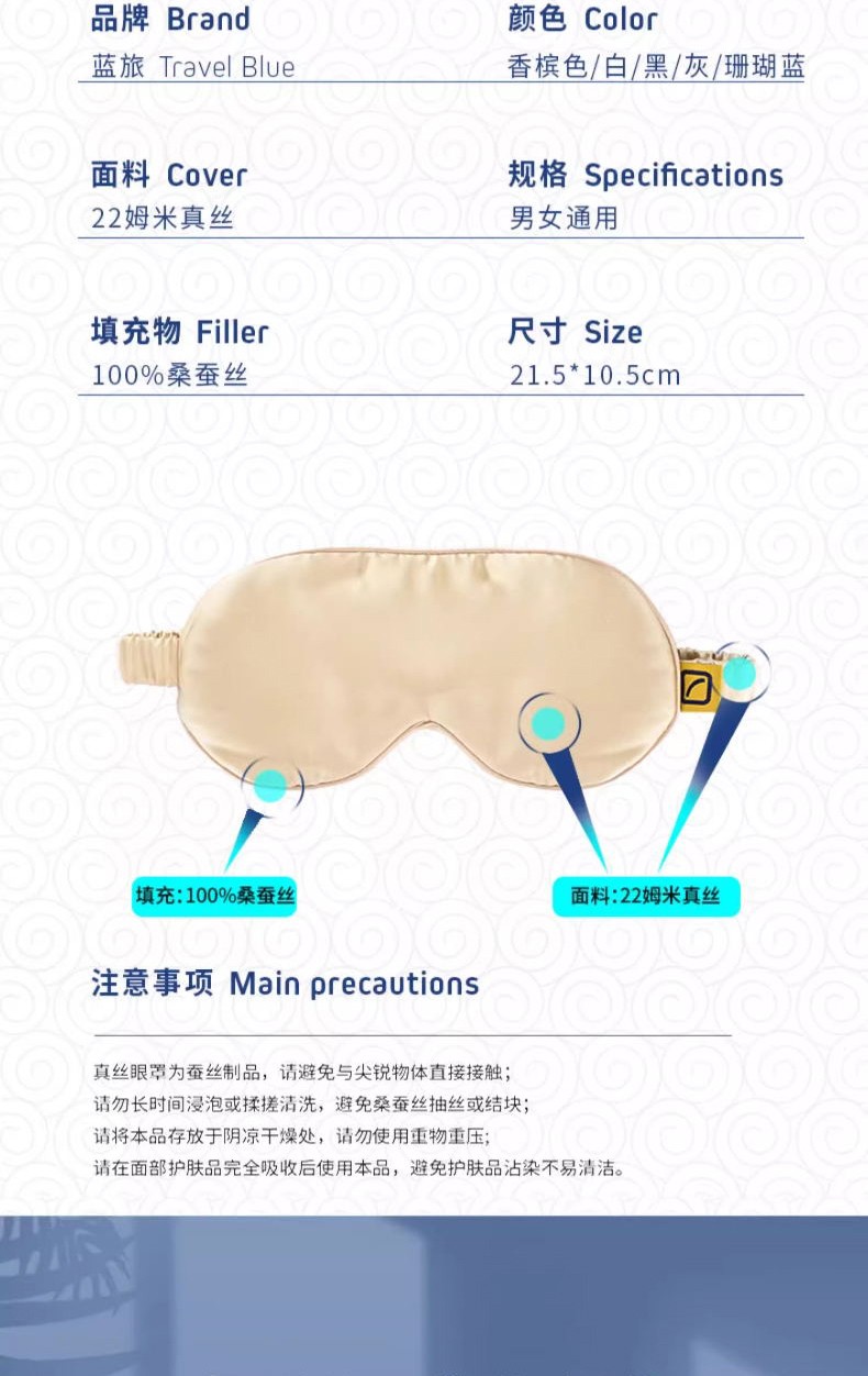 商品名称:(超运·禾贸)英国蓝旅Travel Blue桑蚕丝眼罩100%真丝眼罩睡眠遮光透气桑蚕丝填充送礼高端奢品礼盒457 香槟色