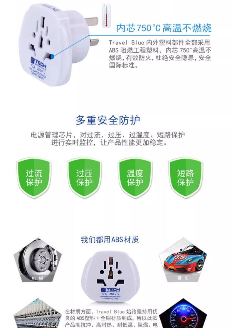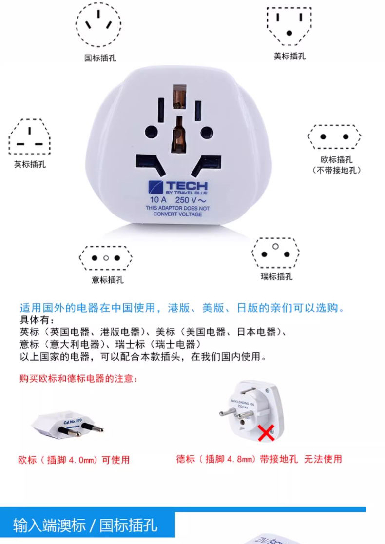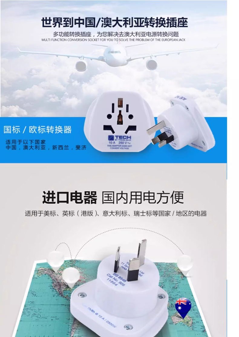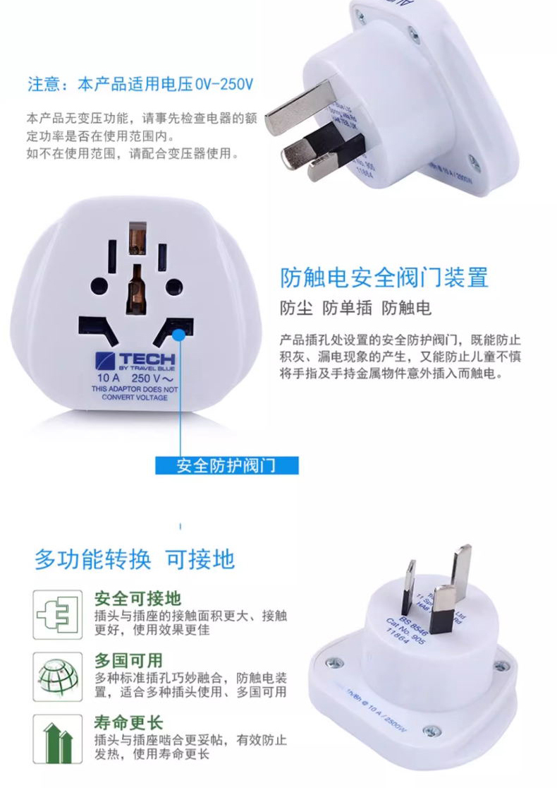 商品名称:(超运·禾贸)英国蓝旅Travel Blue世界到中国澳大利亚转换插座905 国标转英标欧标美标电源转换插头适合国外电器在国内使用