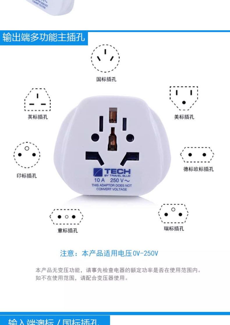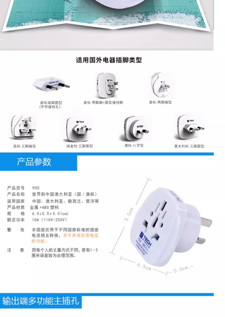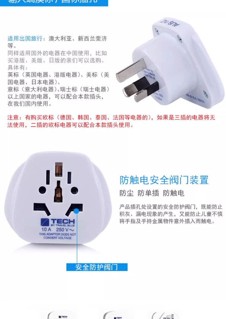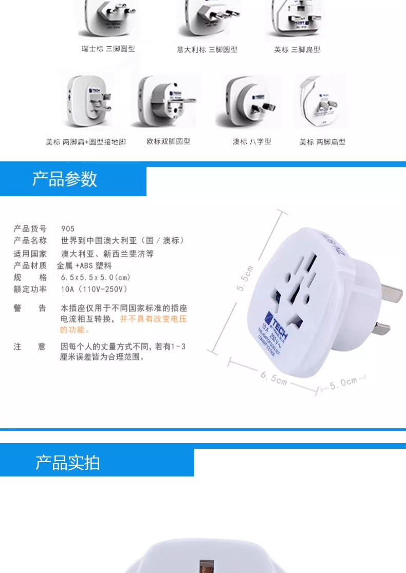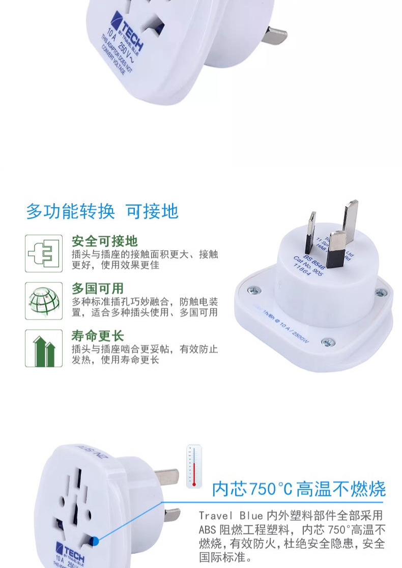 商品名称:(超运·禾贸)英国蓝旅Travel Blue世界到中国澳大利亚转换插座905 国标转英标欧标美标电源转换插头适合国外电器在国内使用