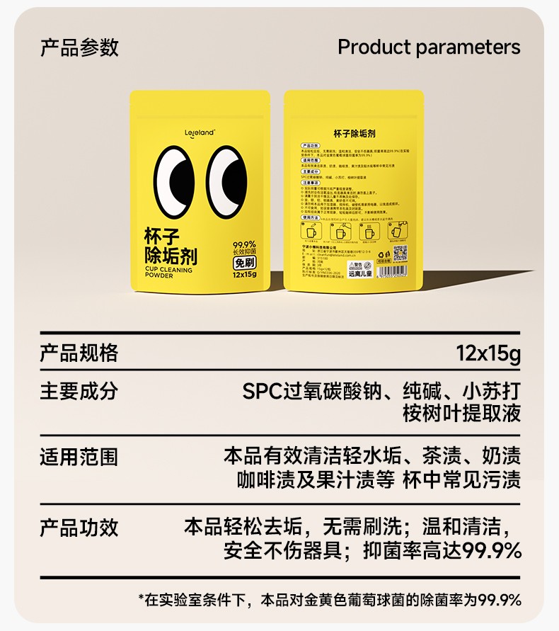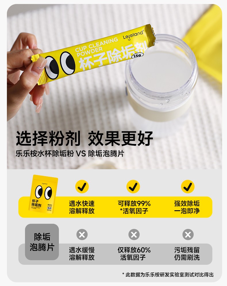 商品名称:(汇景缘)乐乐桉水杯除垢剂12*15g袋*3 多功能办公室咖啡垢茶渍清洁剂食品级洗杯子茶壶