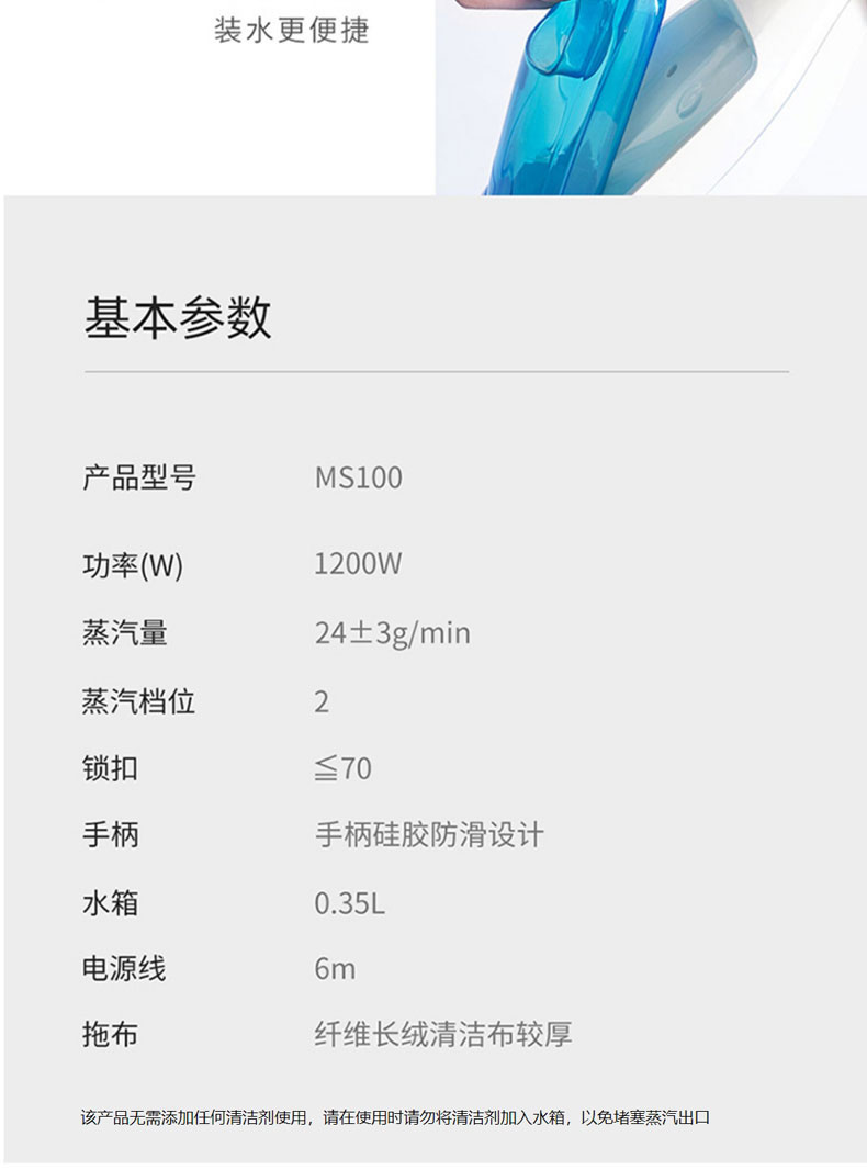 商品名称:(世星阳光)莱克 吉米(Jimmy)蒸汽拖把 MS1001 高温蒸汽除菌 深层清洁 拖后无水痕