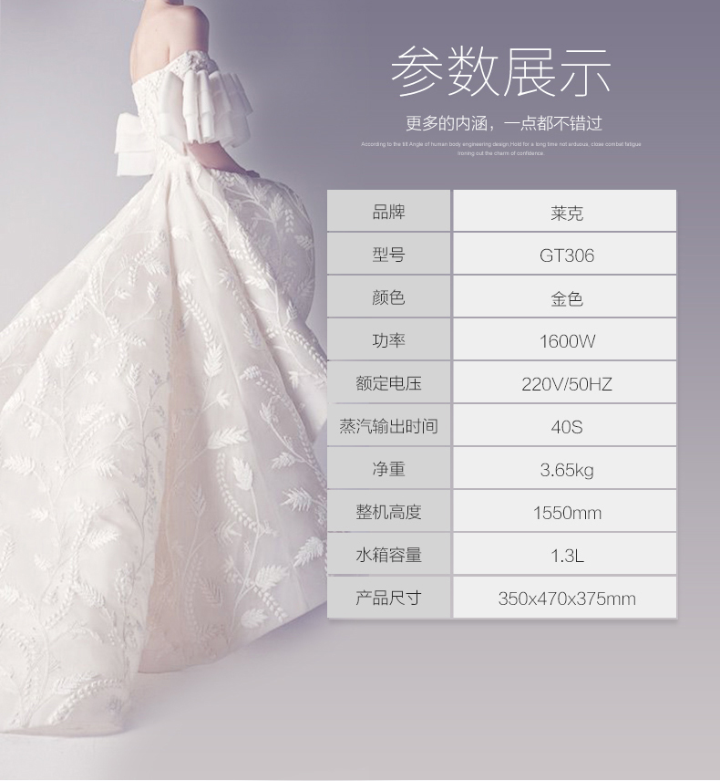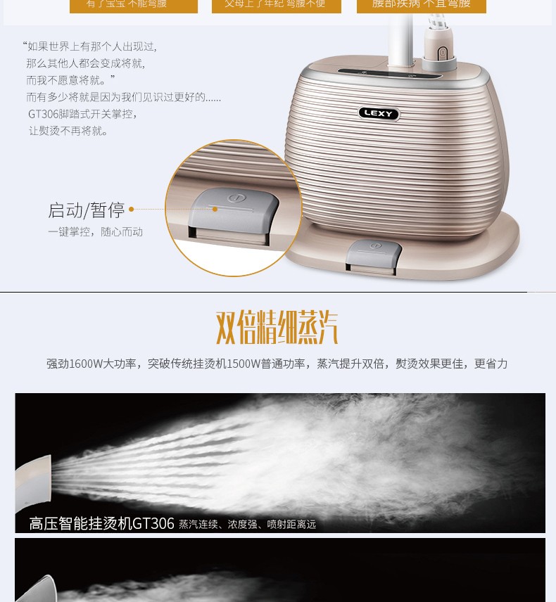 商品名称:(世星阳光)莱克-挂烫机GT306 40秒快速出气 1600w大功率 多重安全保护