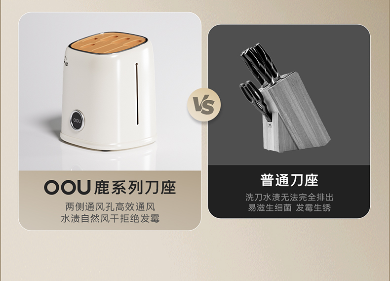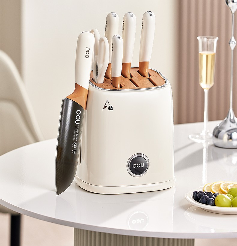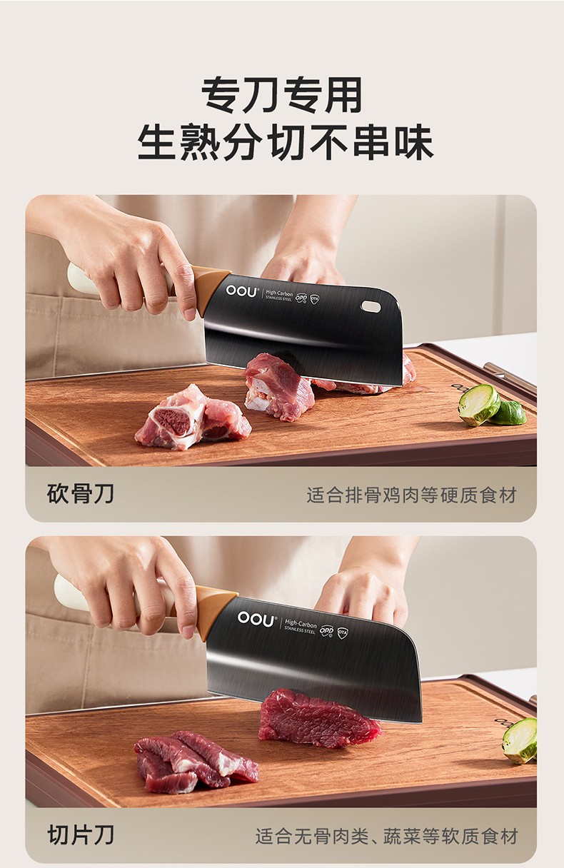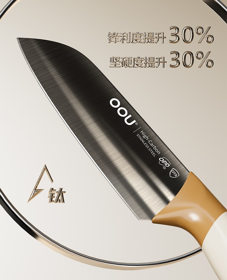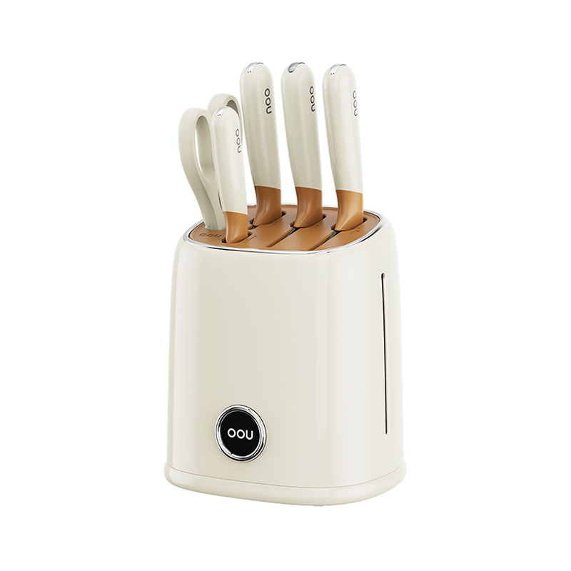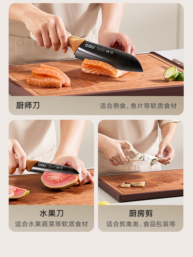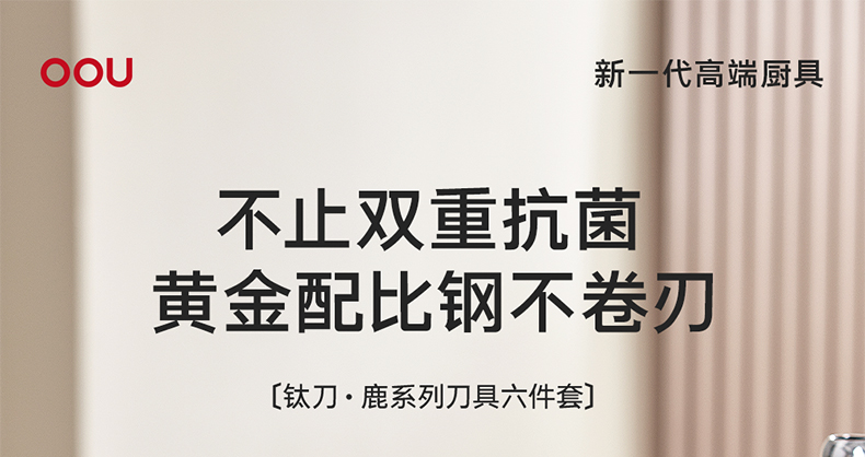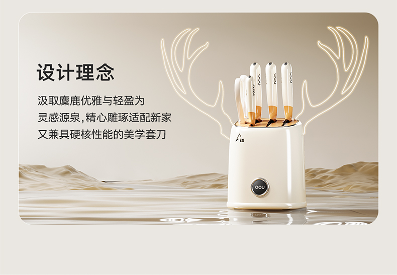 (超运·禾贸)OOU DJ0089 鹿系列抗菌6件套(奶白色) 厨房菜刀组套装切菜刀剪刀银钛刀具全套