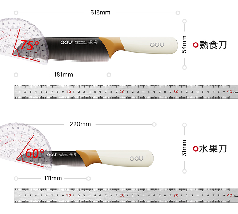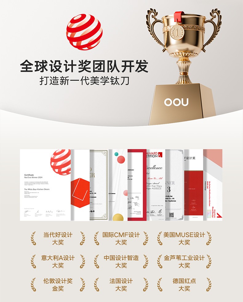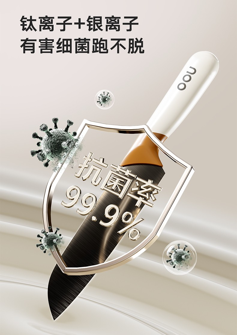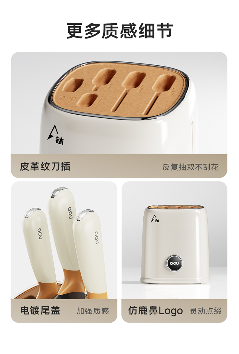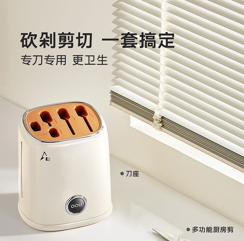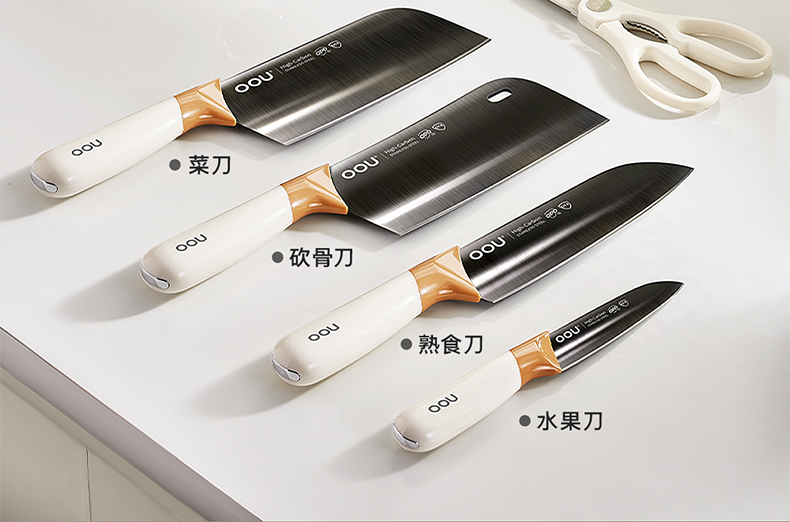商品名称:(超运·禾贸)OOU DJ0089 鹿系列抗菌6件套(奶白色) 厨房菜刀组套装切菜刀剪刀银钛刀具全套