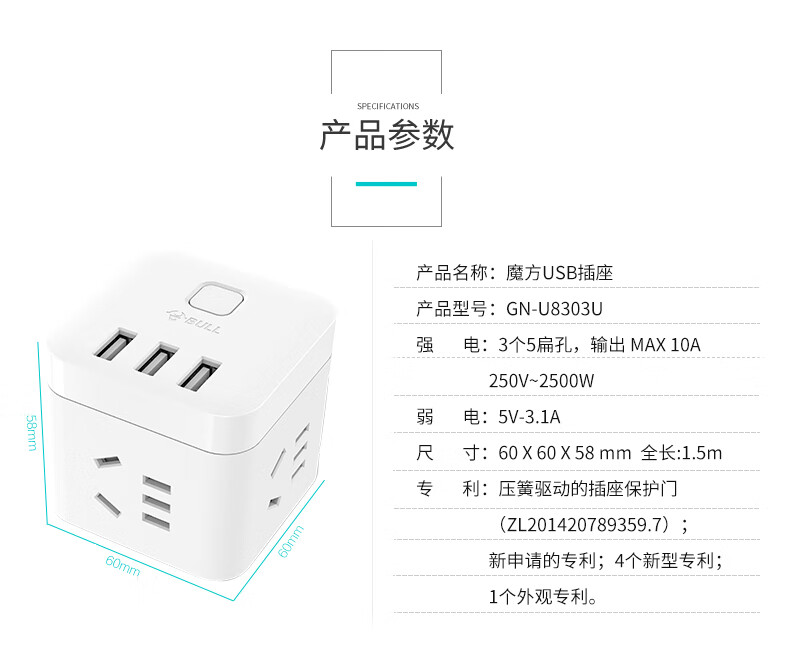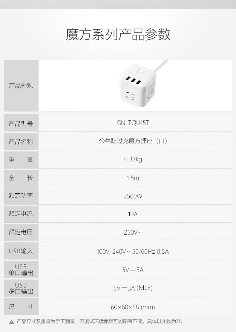 商品名称:(巨邦佑)BJ+公牛(BULL)一转多魔方插座 多型号可选USB孔位