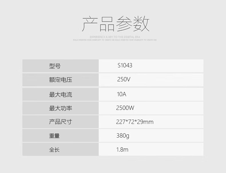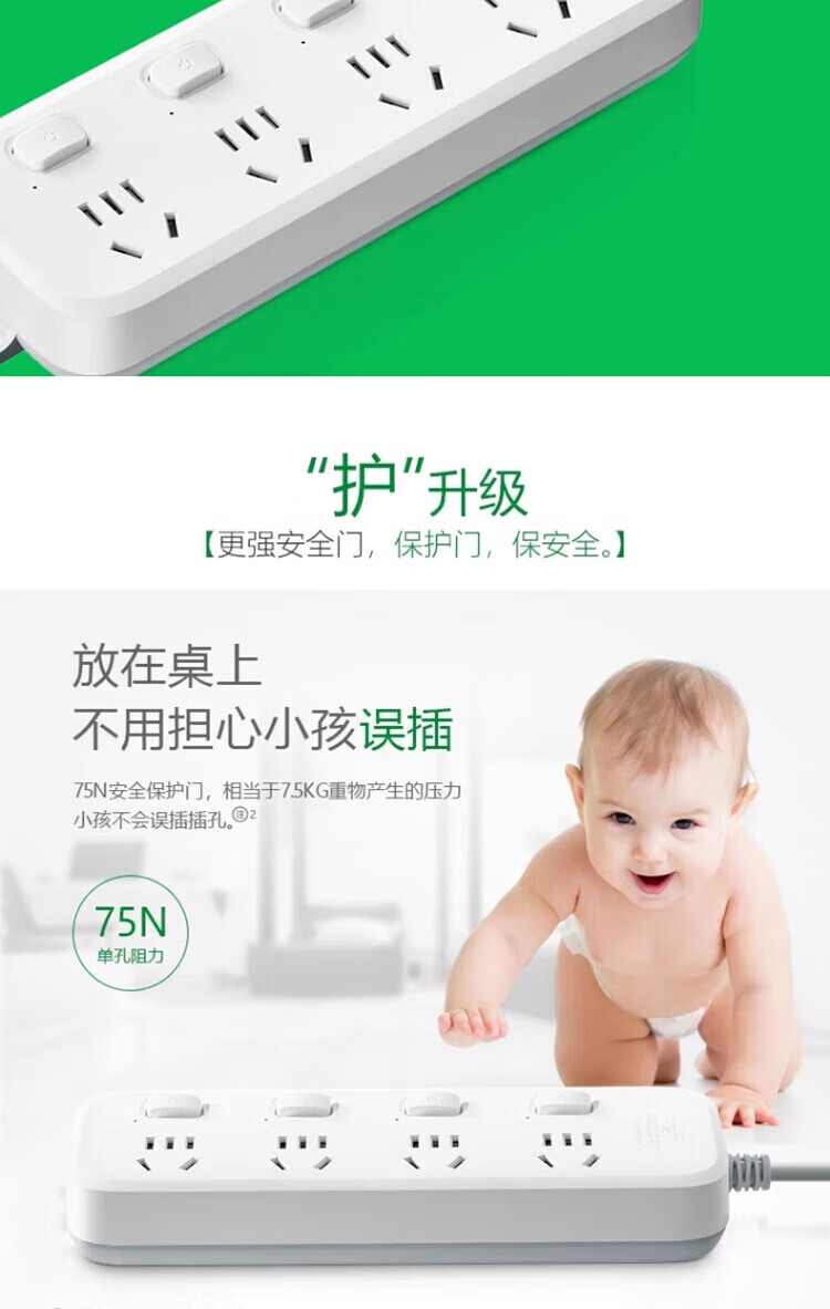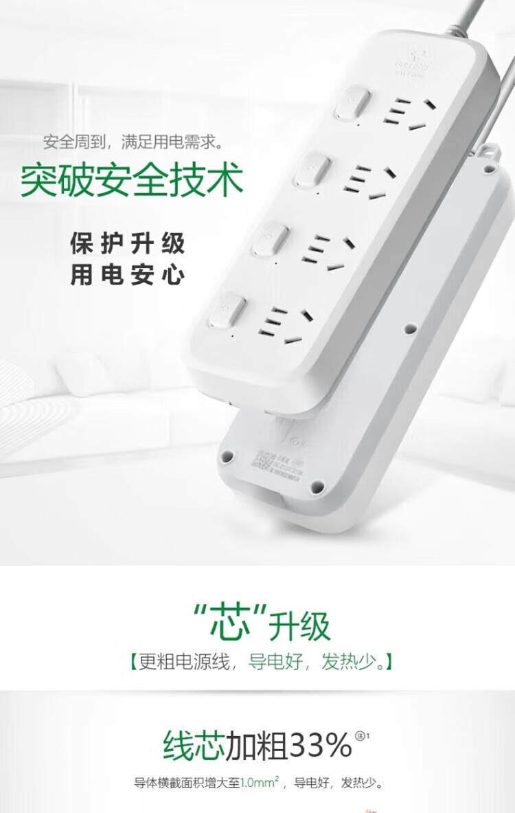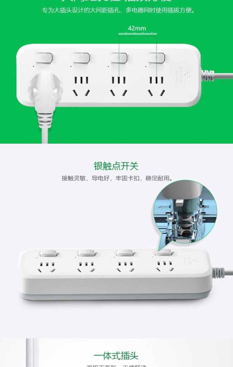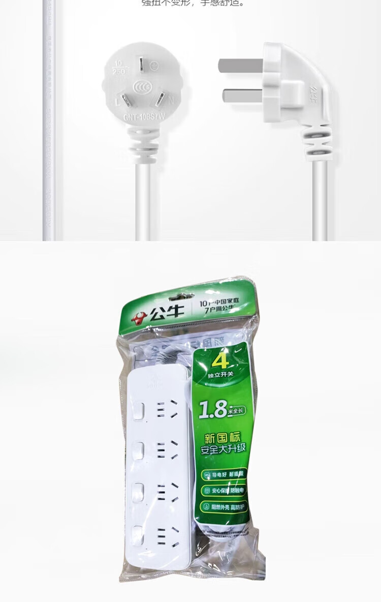 商品名称:(巨邦佑)BJ+公牛(BULL)新国标插座 S1043 4位分控 1.8M新国标插座插线板插排接线板拖线板