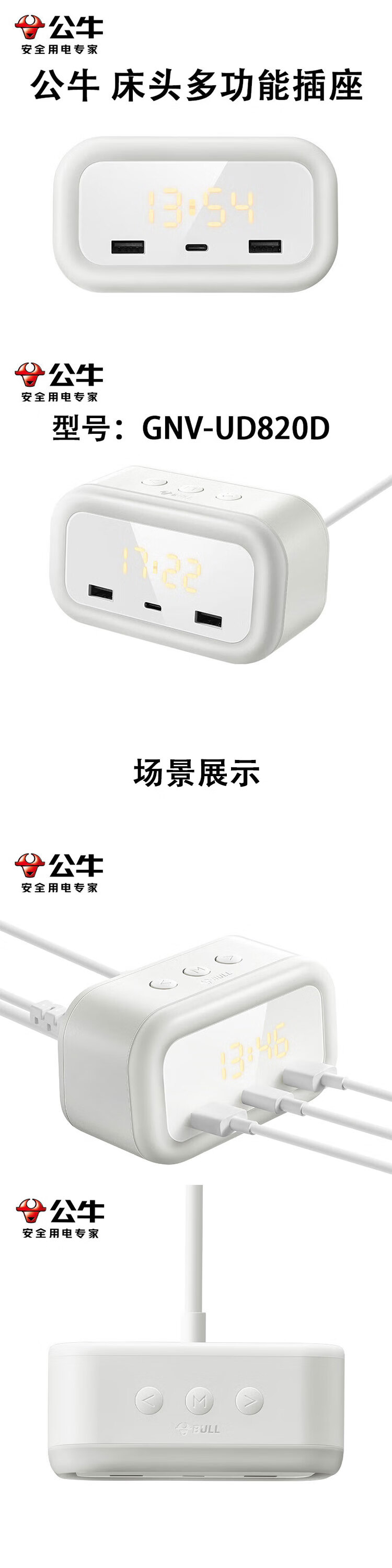 商品名称:(巨邦佑)BJ+公牛(BULL)三代夜灯充电邬UD820D 0.8m床头多功能插座