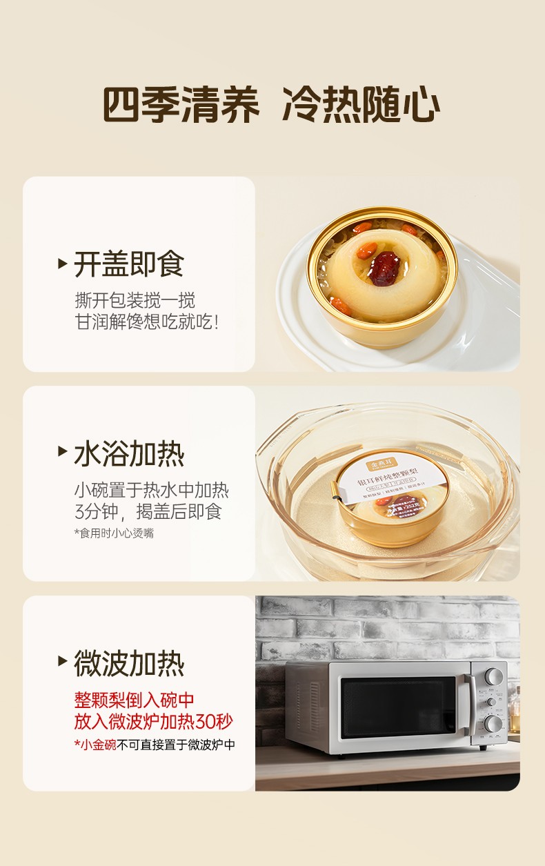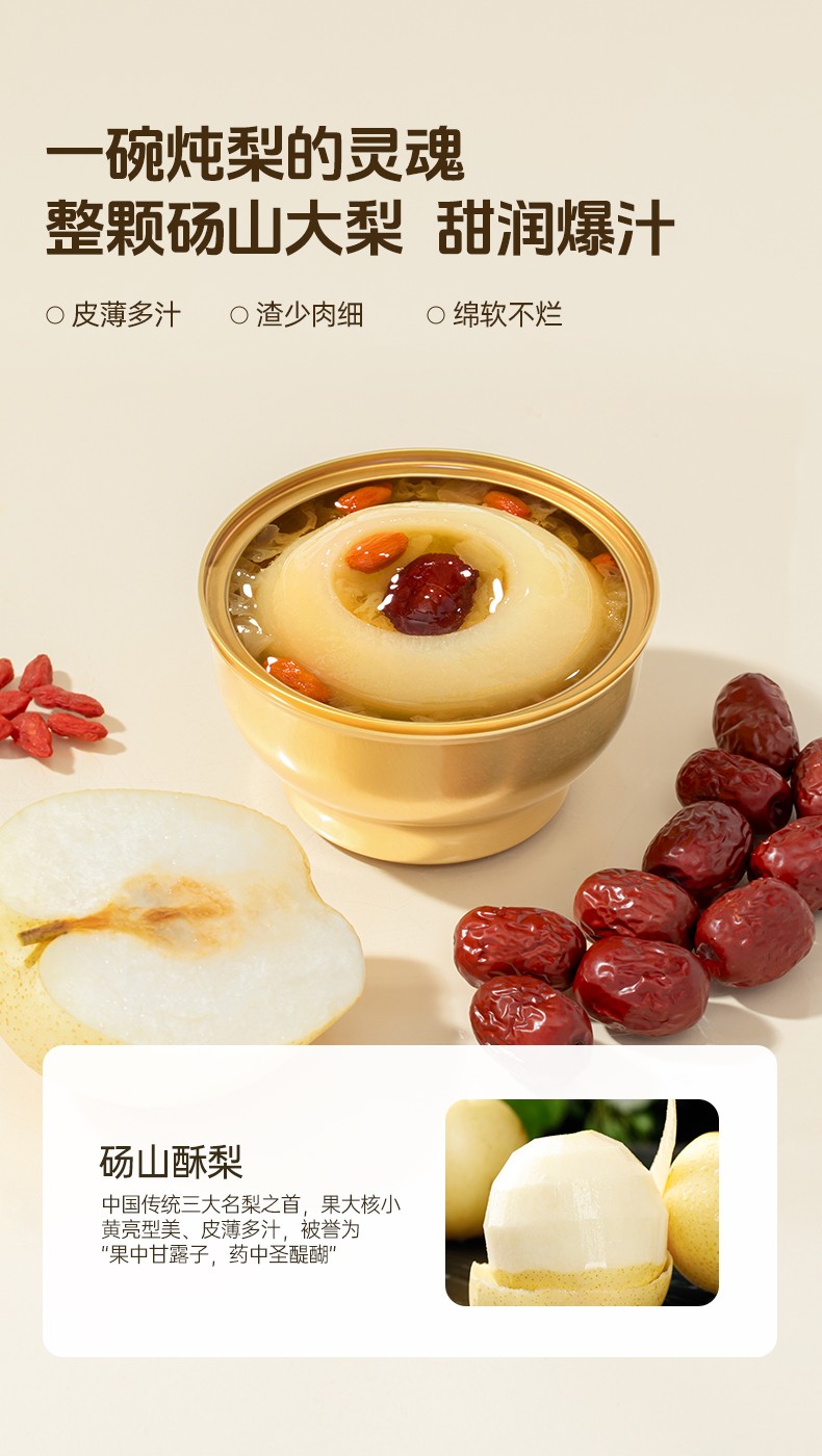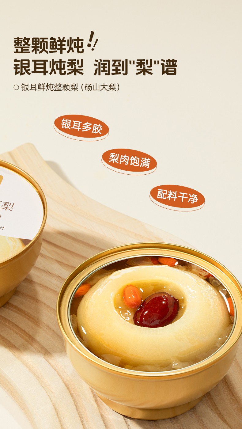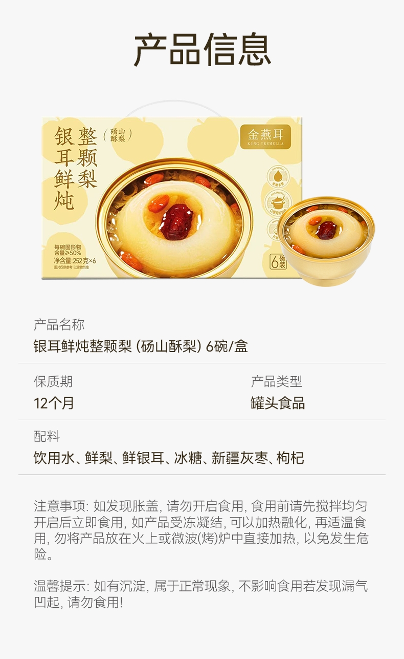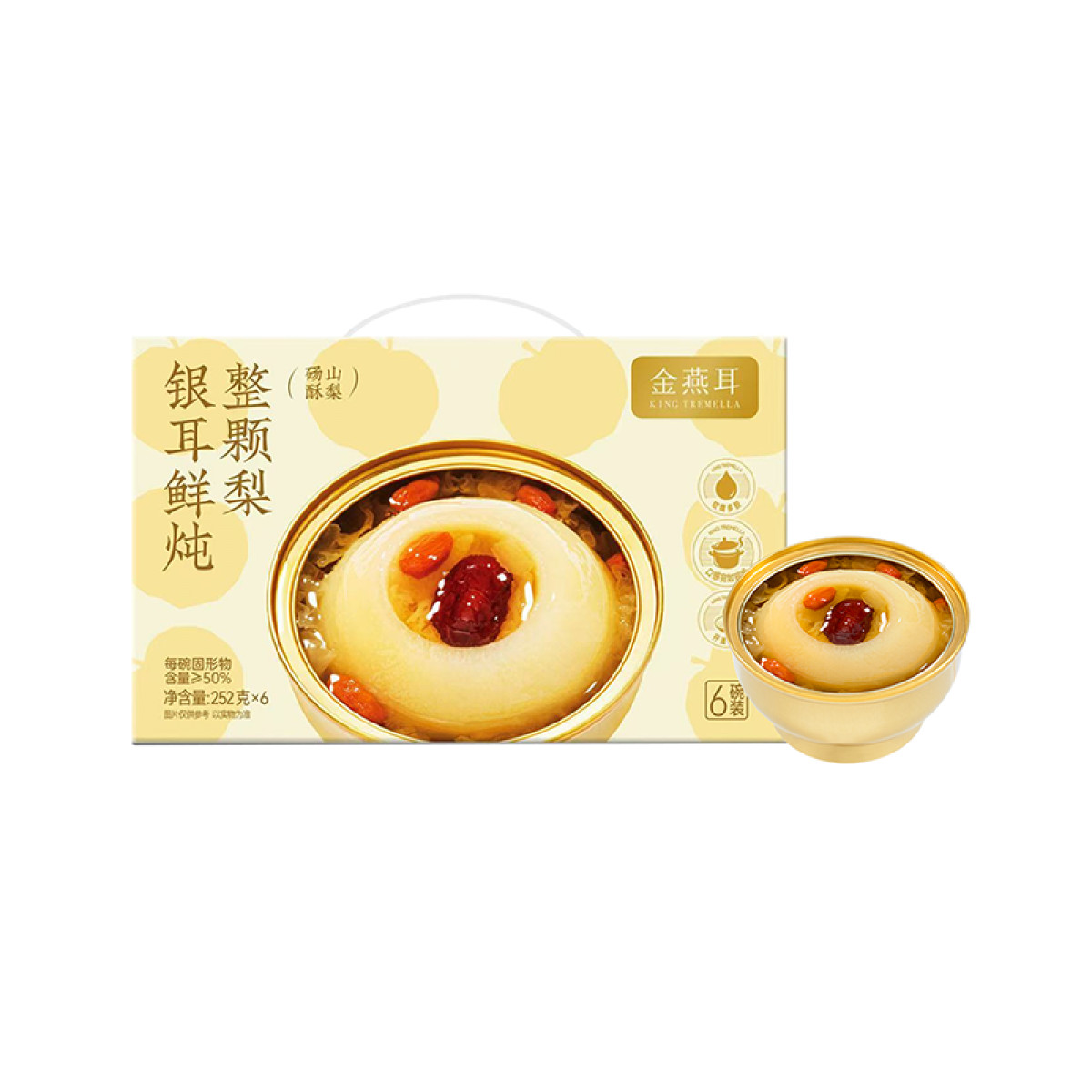 商品名称:(汇景缘)金燕耳K银耳鲜炖整颗梨(砀山酥梨)252g*6碗 银耳鲜炖整颗梨