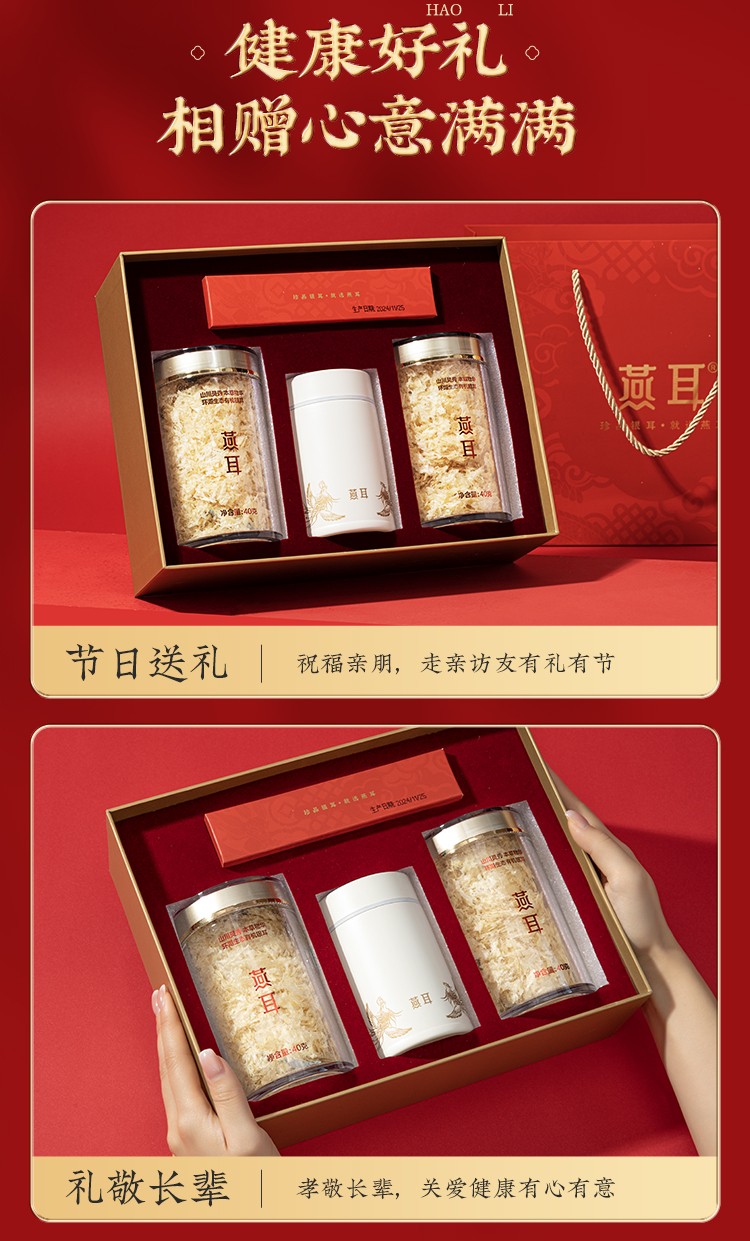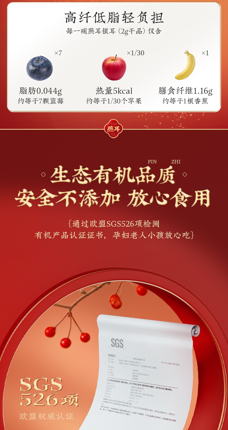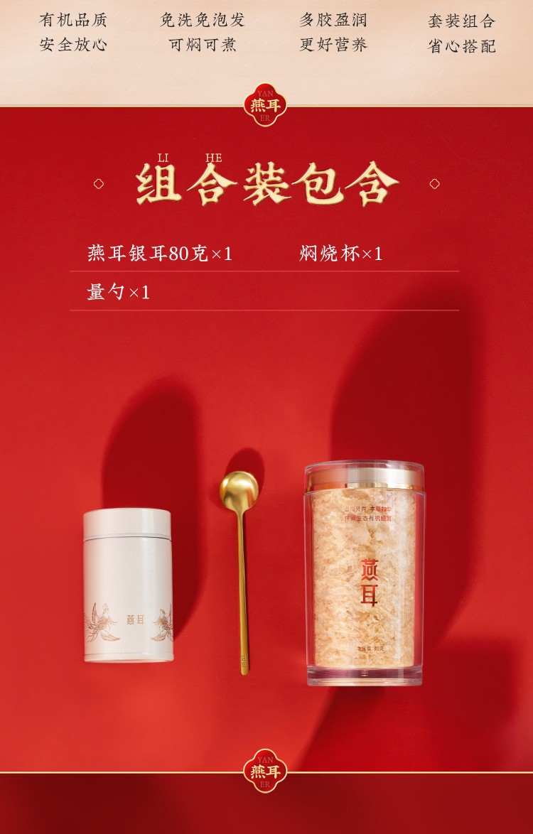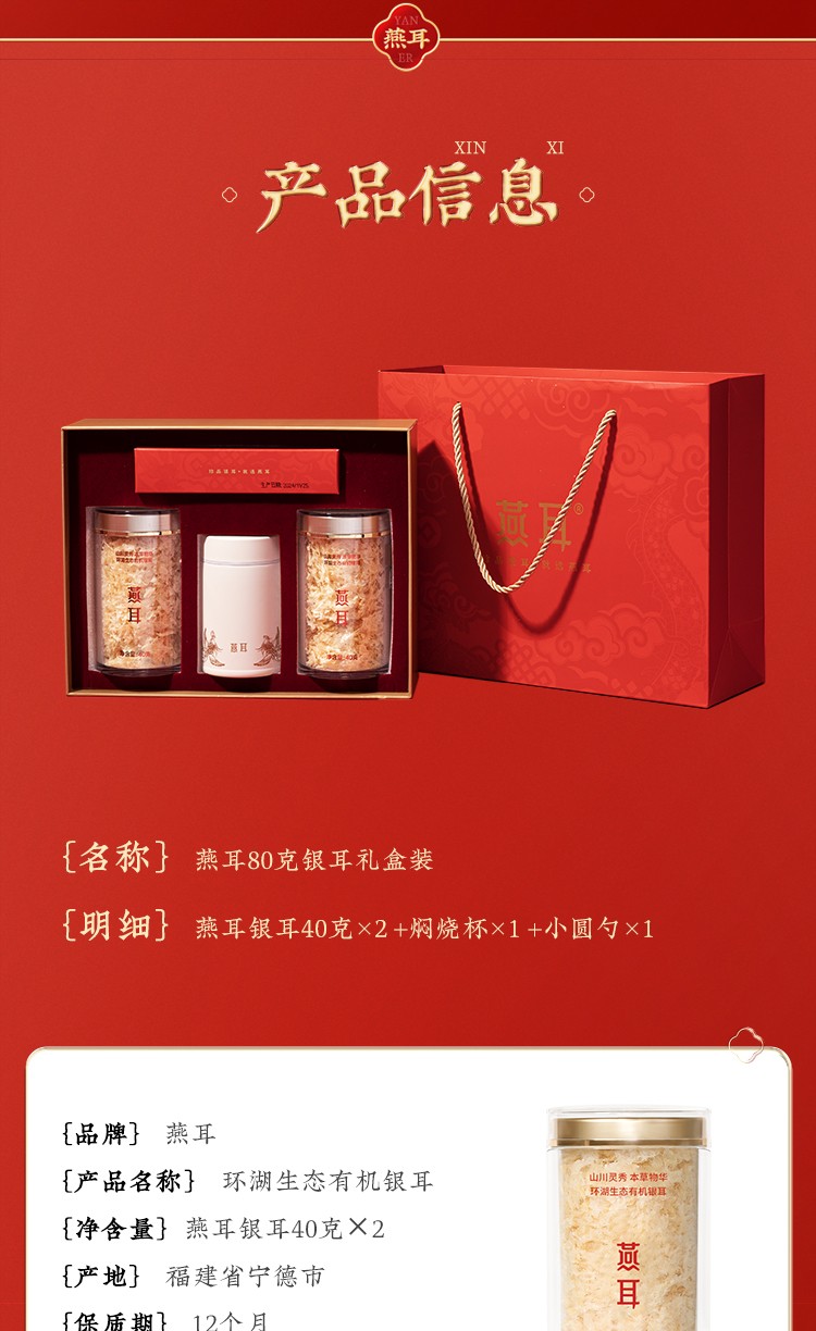 商品名称:(汇景缘)金燕耳Y银耳40g双罐装礼盒Y02 有机即食银耳羹免洗免煮冲泡