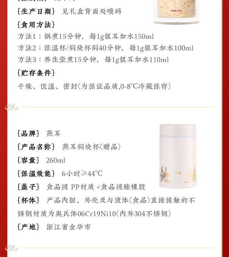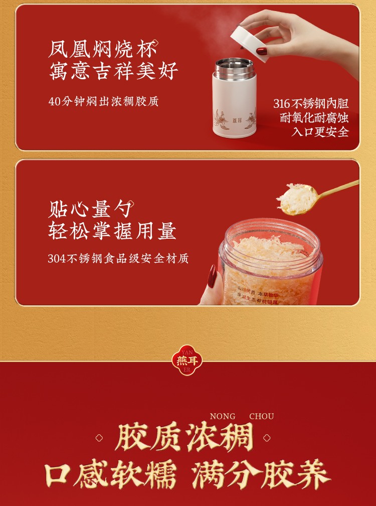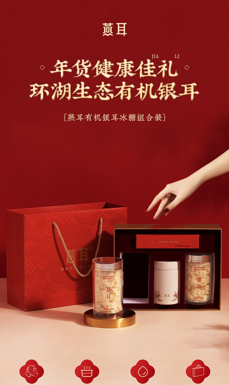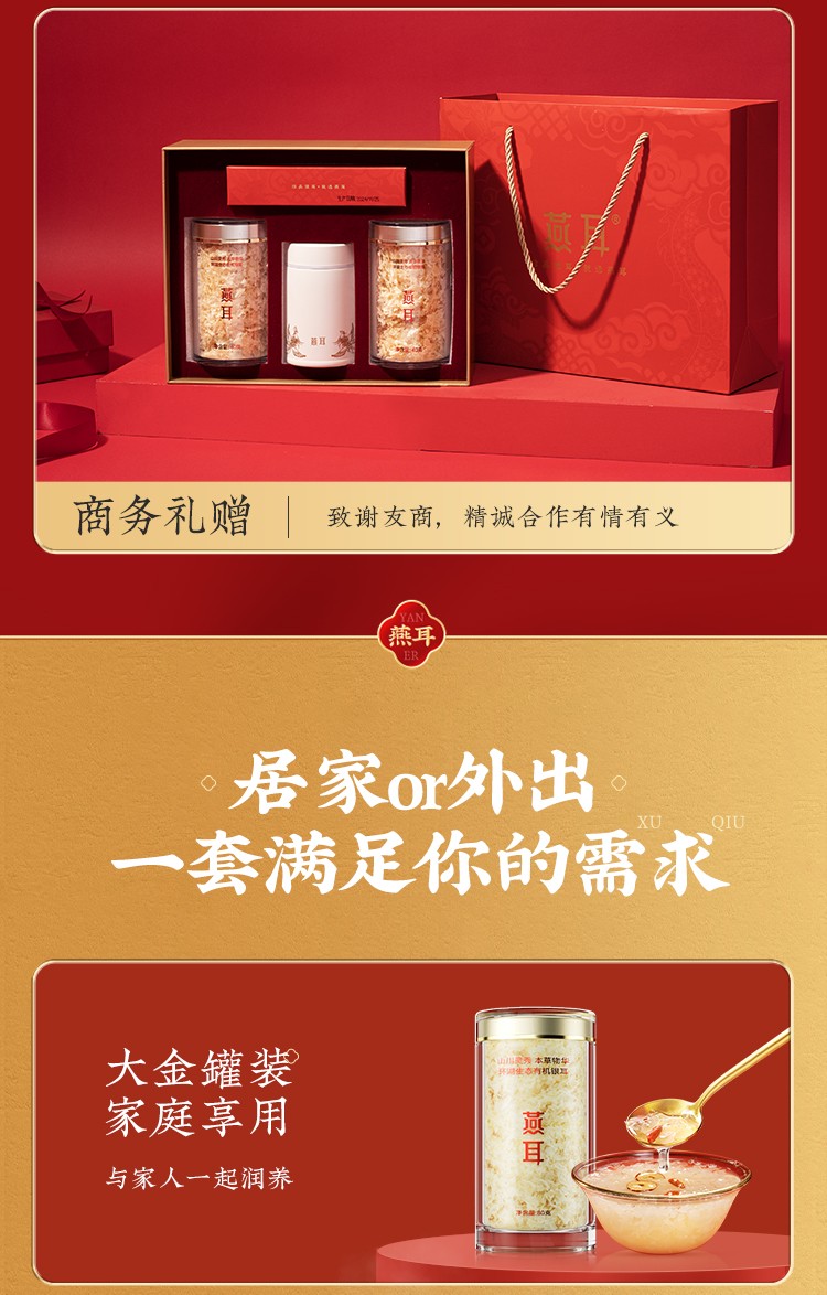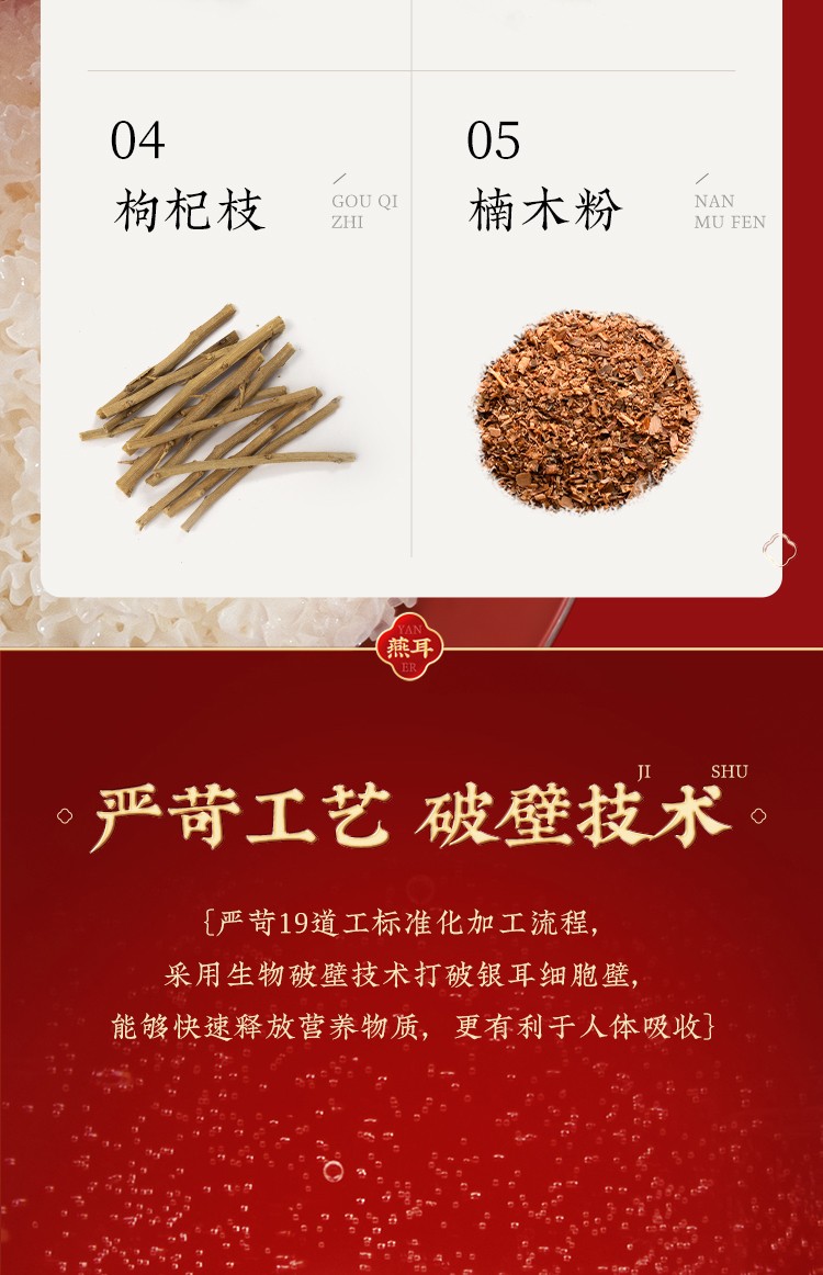 商品名称:(汇景缘)金燕耳Y银耳40g双罐装礼盒Y02 有机即食银耳羹免洗免煮冲泡